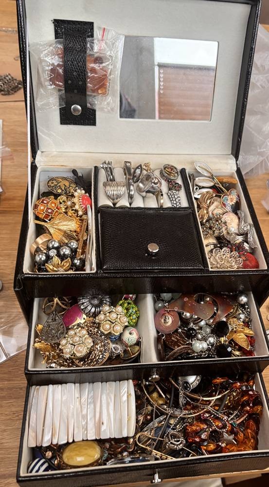 Schmuckkoffer voller vintage Modeschmuck, viele Teile [1]