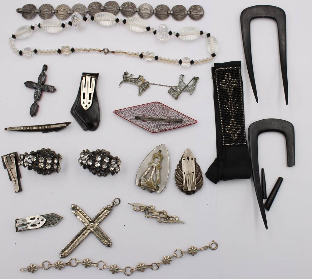 Schmuckkonvolut, Broschen, Nadeln etc., teilw. defekt, meist um 1920 [1]