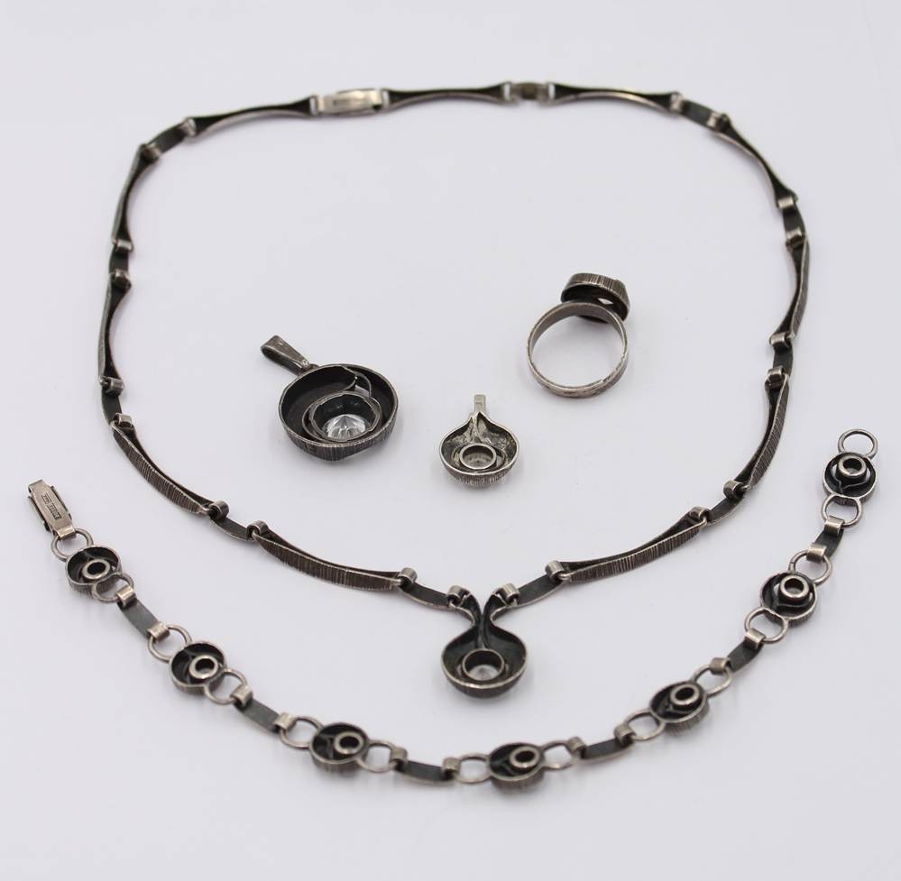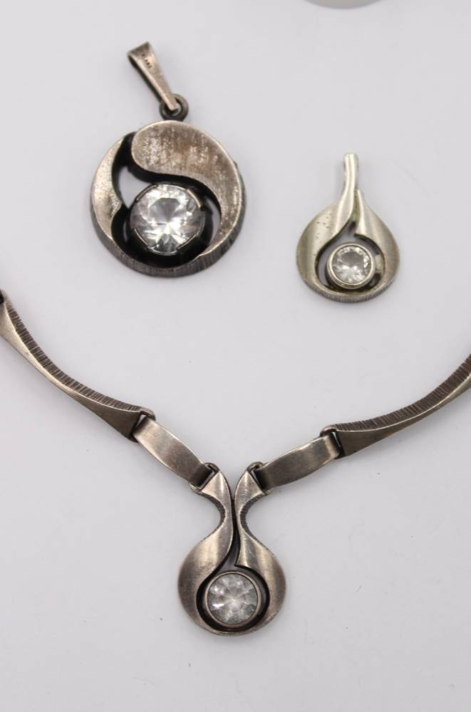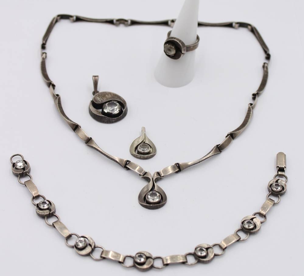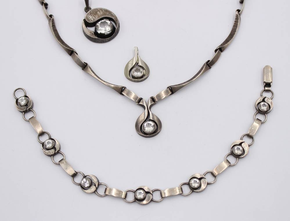Schmuckset, Karl Laine, Finnland, 925er Silber, klare Steine, Kette L-42cm, Armband L-20cm, zus. 49,8gr. [1]