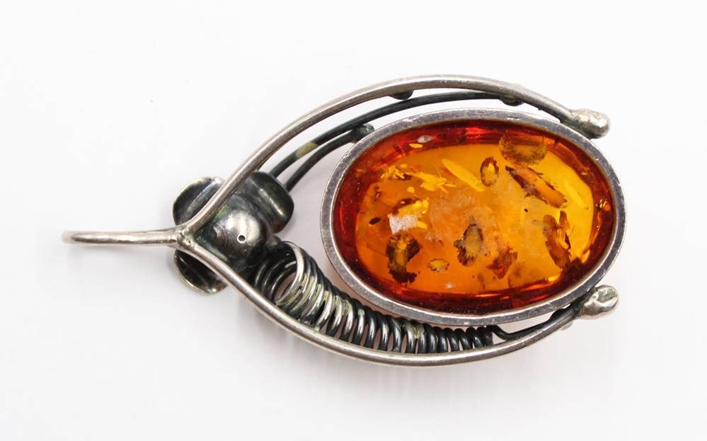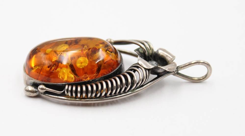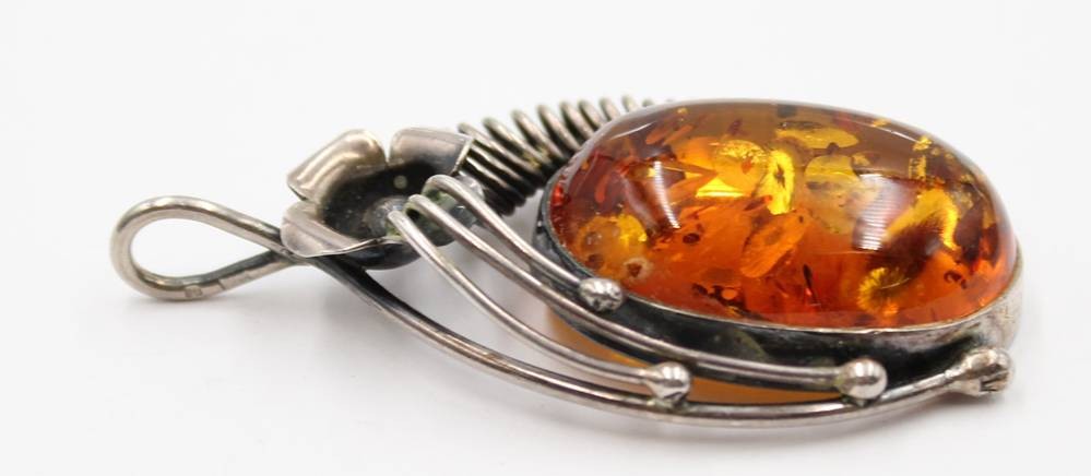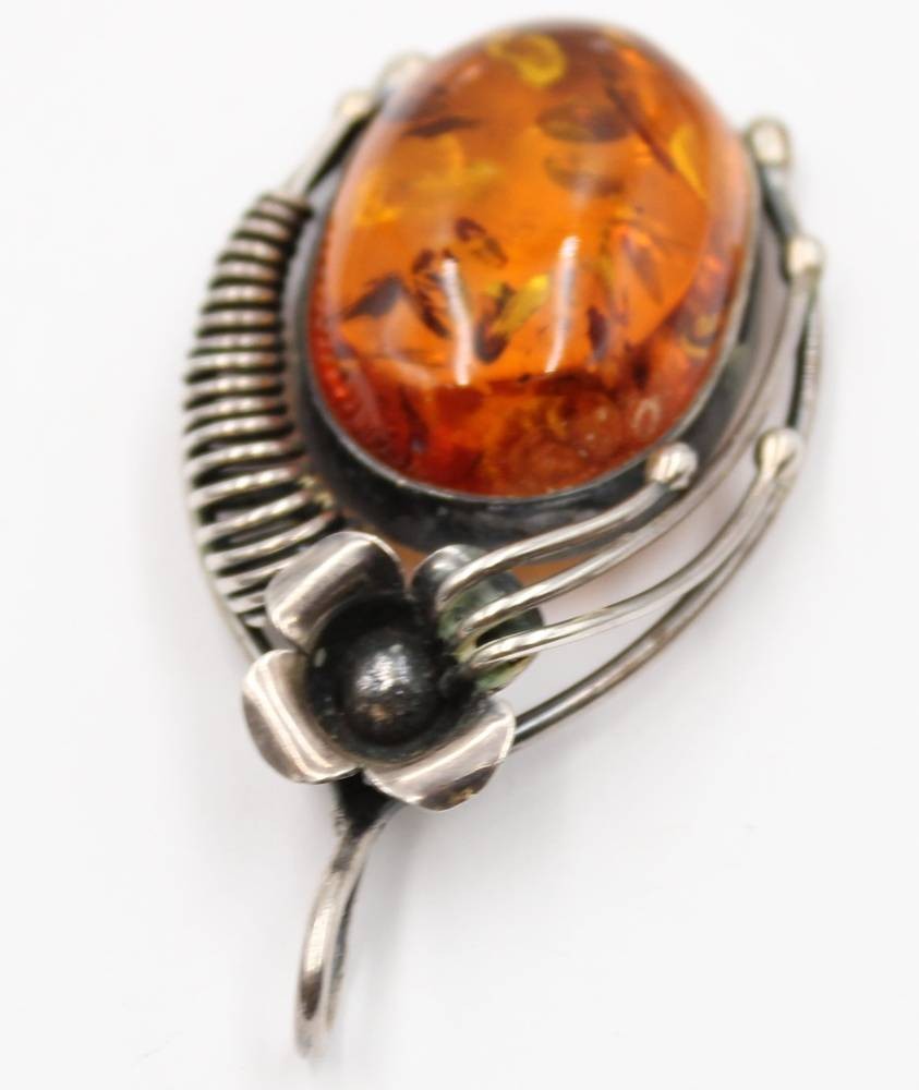 schöner Bernsteinanhänger in 835er Silberfassung, älter, zus. 14gr., L-5,8cm [1]