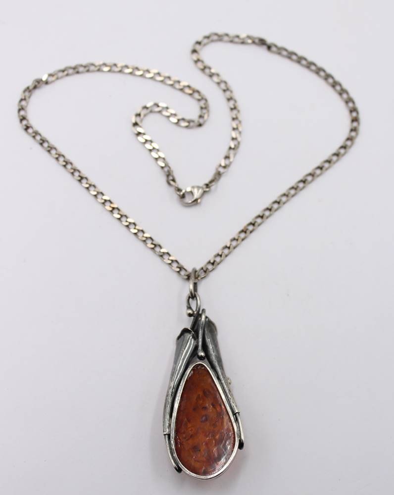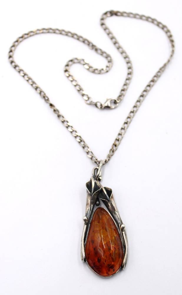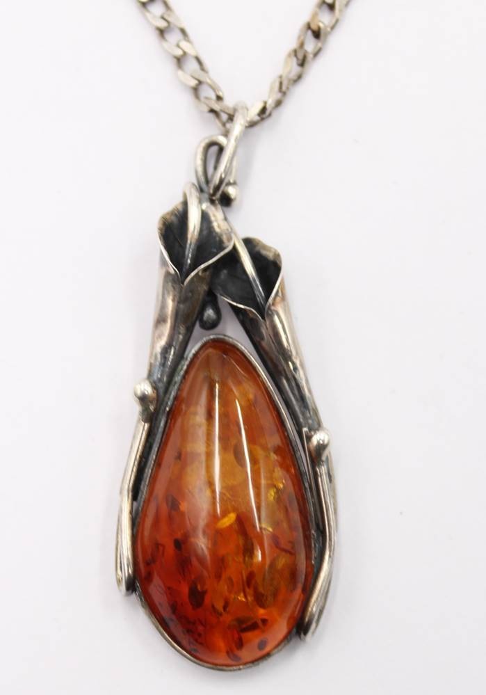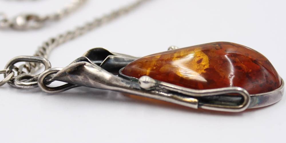 schöner Bernsteinanhänger in 925er Silberfassung an 925er Kette, 20,6gr., L-45cm , Anh. L-6,5cm [1]