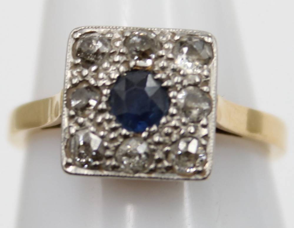 schöner Ring um 1920, 18ct Gold und Platin, Saphir und 8 Diamanten, 3,5gr., RG 54,5 [1]