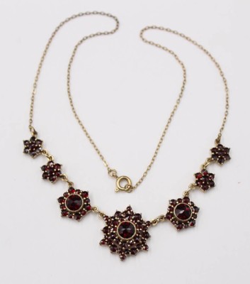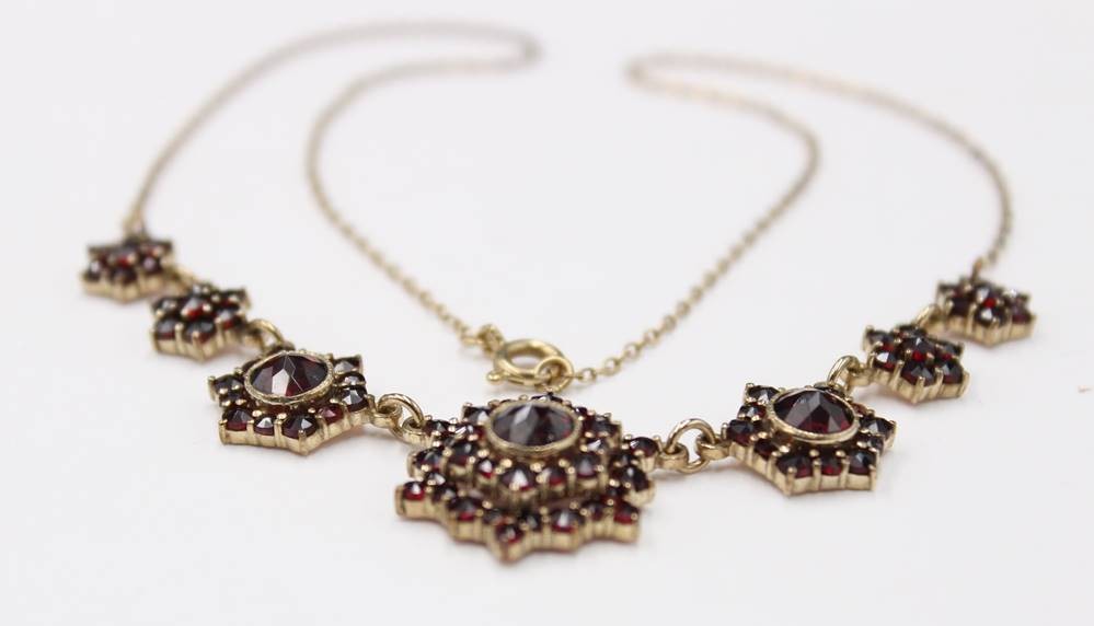 schönes Granat-Collier, Silber (gepr.) vergoldet, L-42cm 10,9gr. [1]