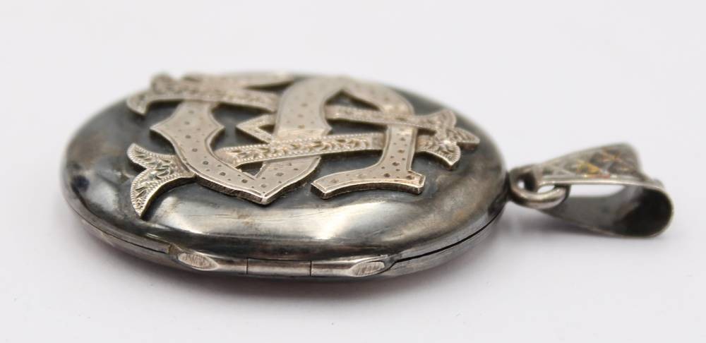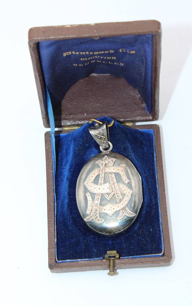 schönes Medaillon mit Ziermonogramm "AS", Silber gepr., um 1900 in orig, Etui, 17,6gr., L-5,5cm [1]