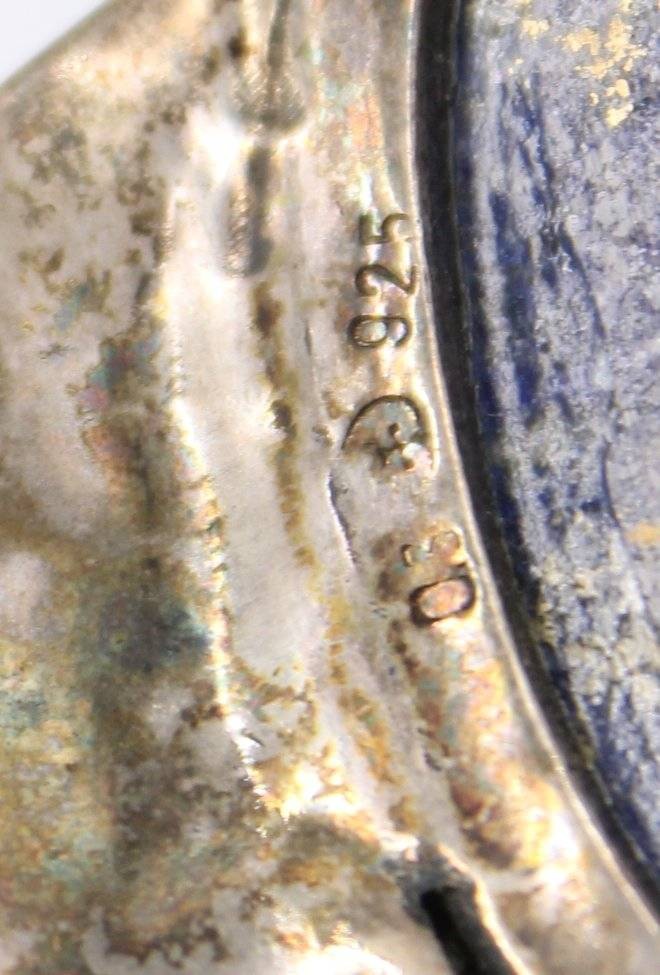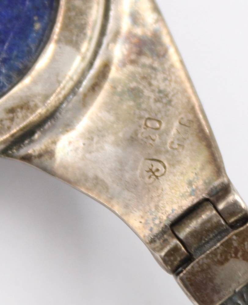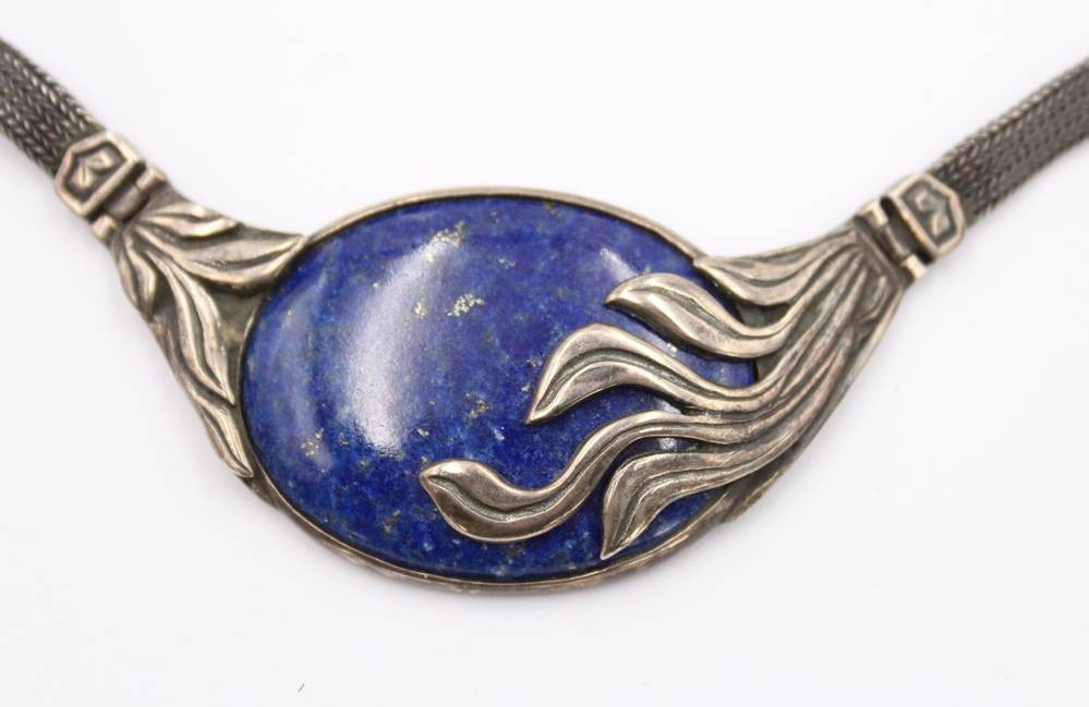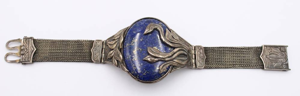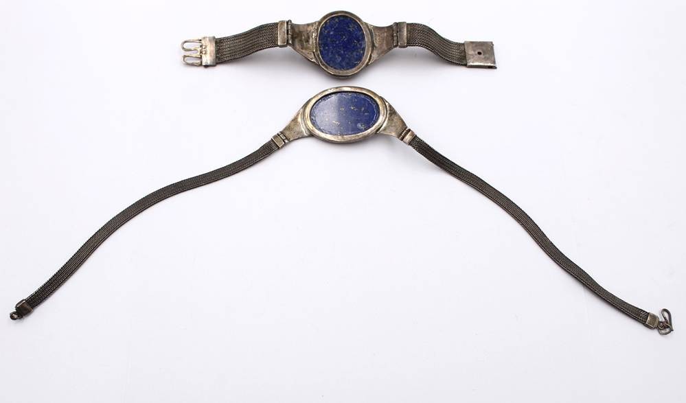 schönes Silberset, älter, 925er Silber, mit gr. Lapislazuli, Collier und Armband, zus ca. 93,4gr., L-35cm, und L-17cm [1]