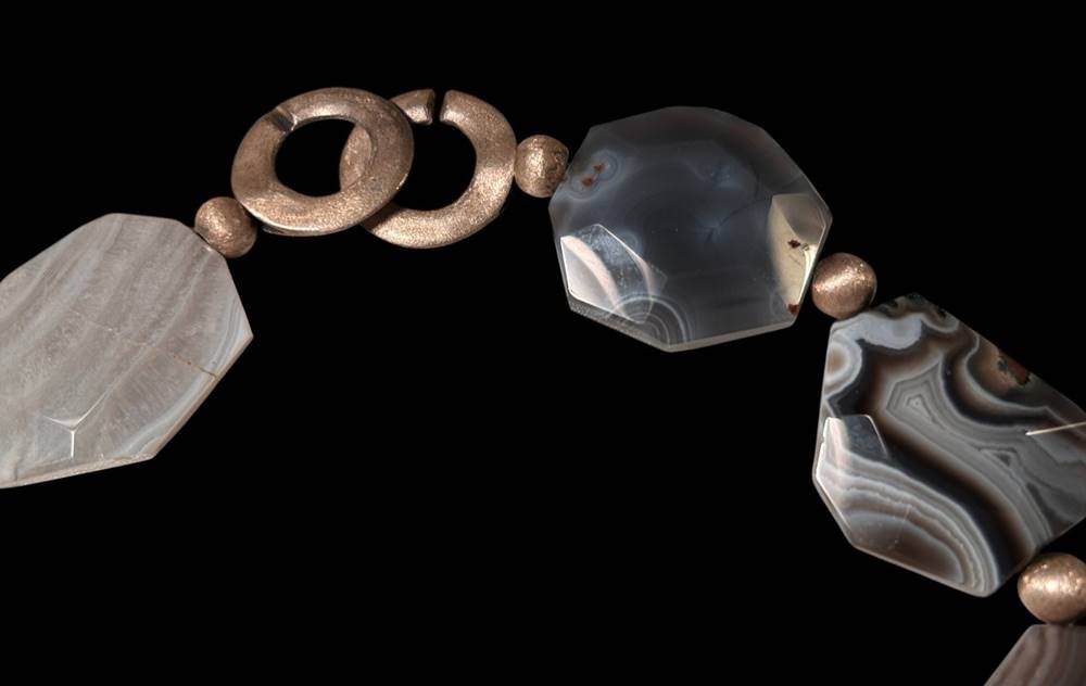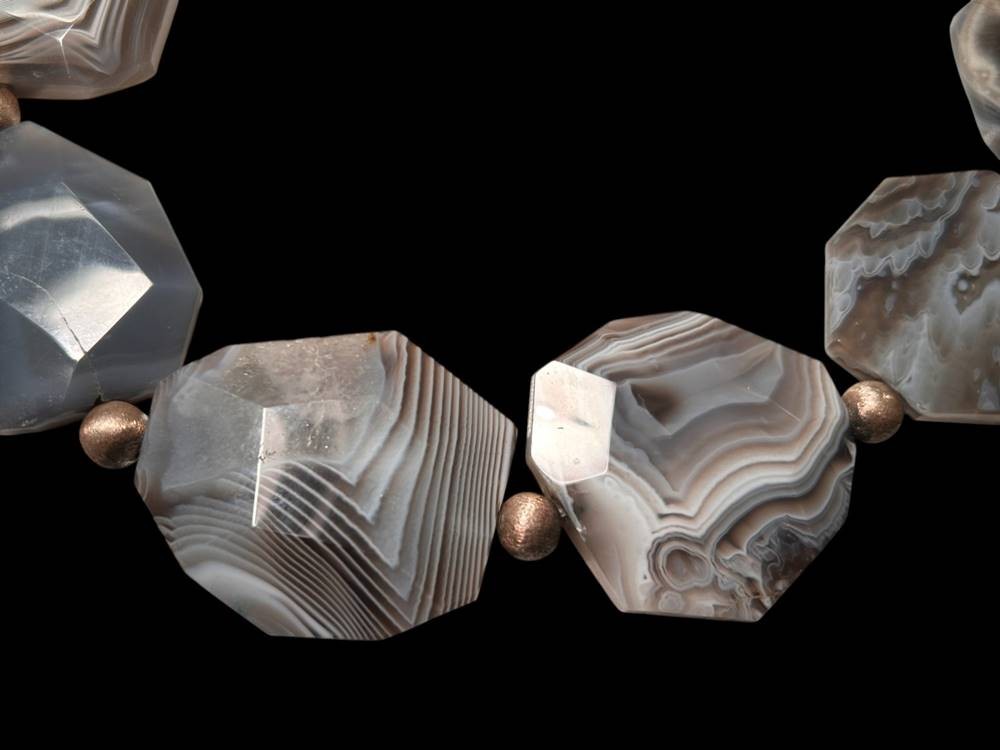 Losnummer 1001 - schwere Botswana Achatkette mit Silber-925-Schliesse und Zwischenelementen, gr. Steinelement ca. 4x3,7 cm, verlaufend, zus.ca. 220 gr