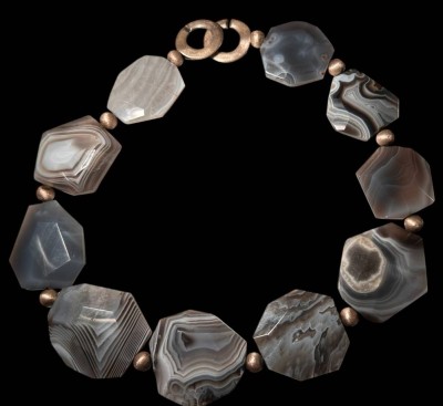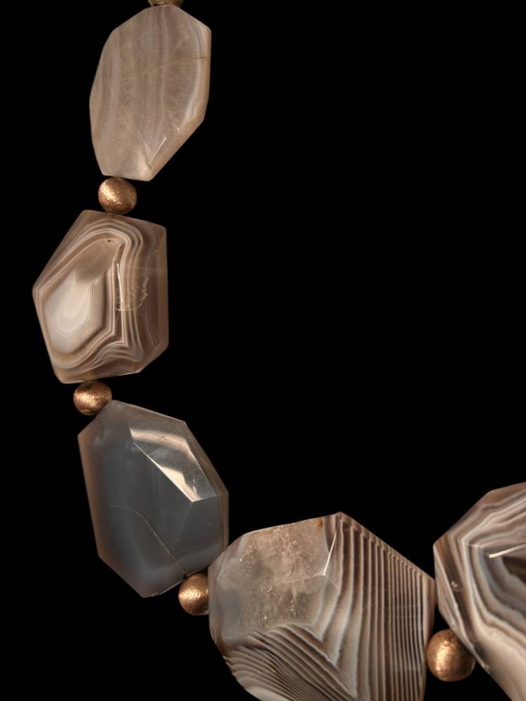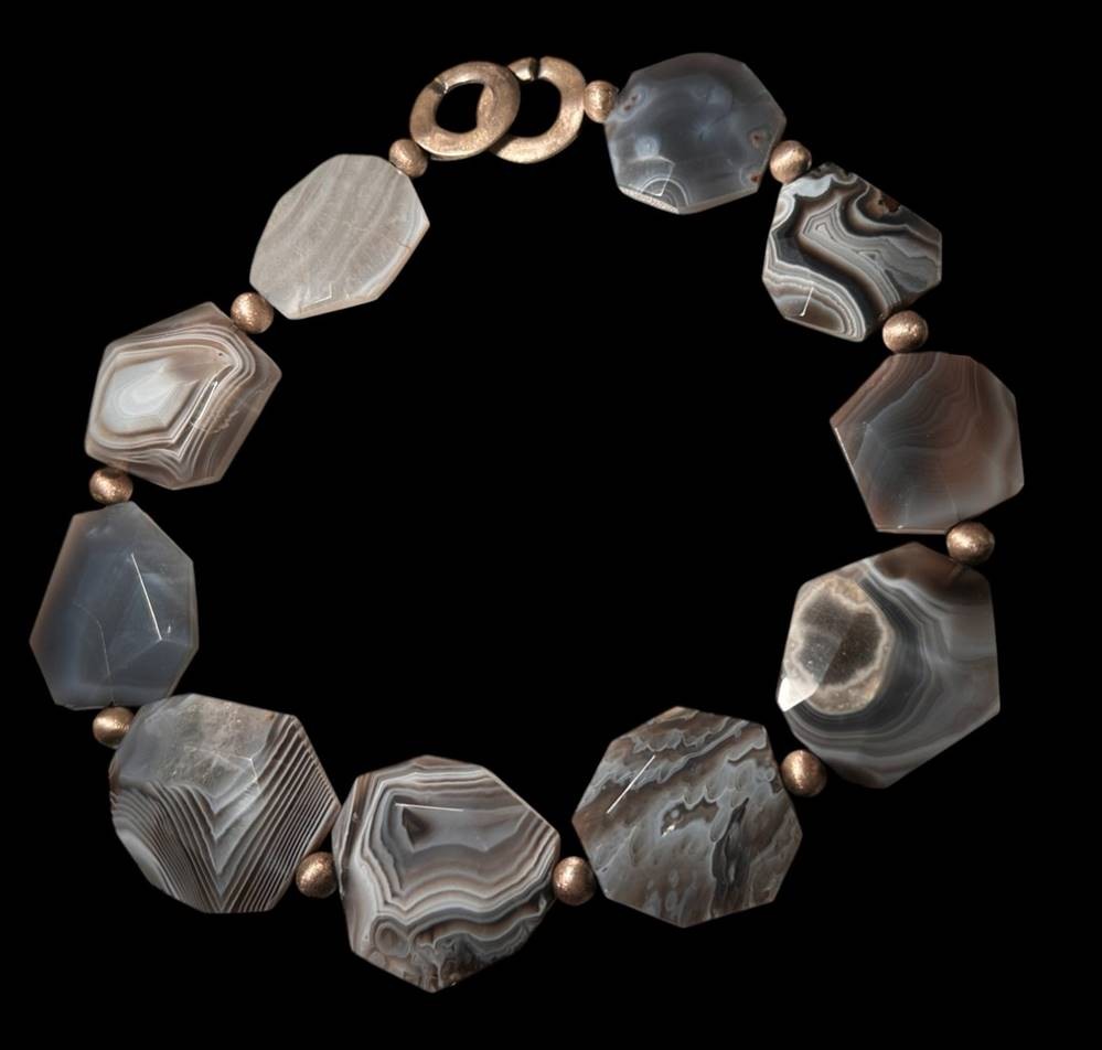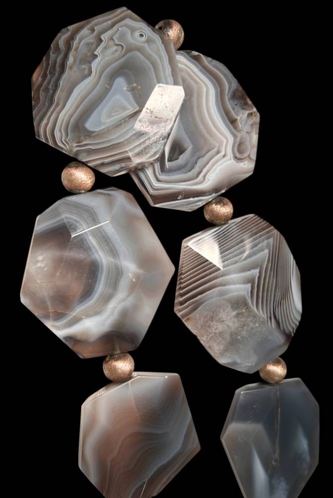 Losnummer 1001 - schwere Botswana Achatkette mit Silber-925-Schliesse und Zwischenelementen, gr. Steinelement ca. 4x3,7 cm, verlaufend, zus.ca. 220 gr