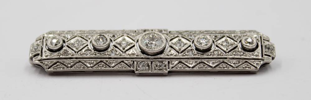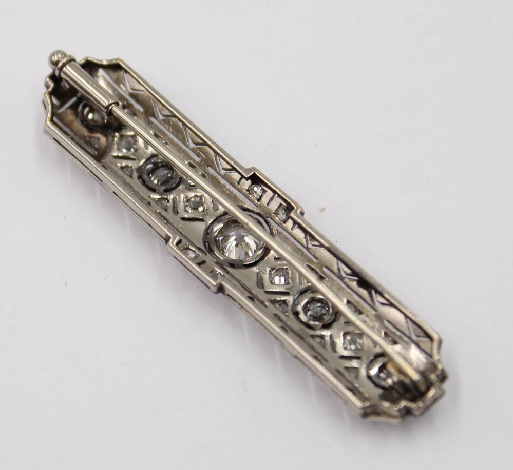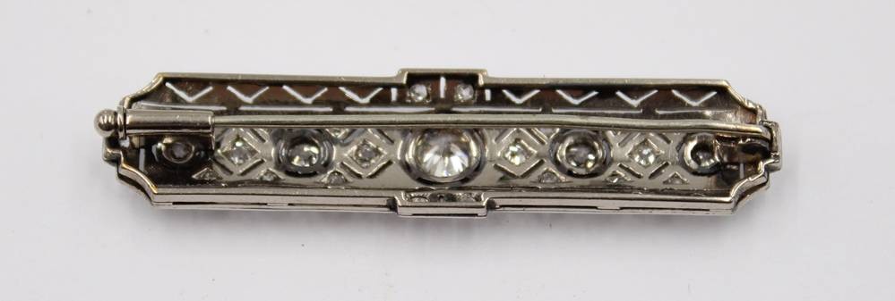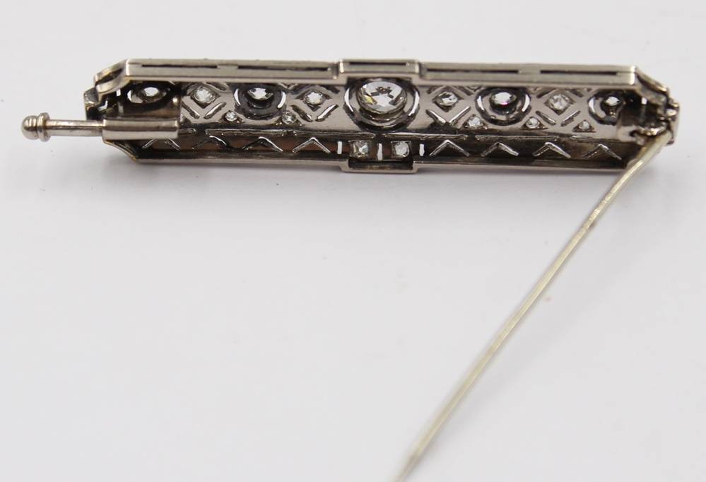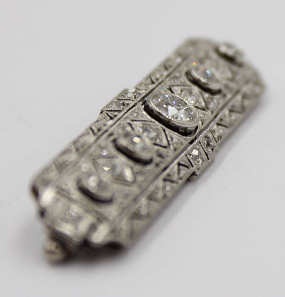 sehr schöne Brosche im Art-Déco Stil, wohl Platin, Diamantbesatz, 5,7gr., L-4,5cm [1]