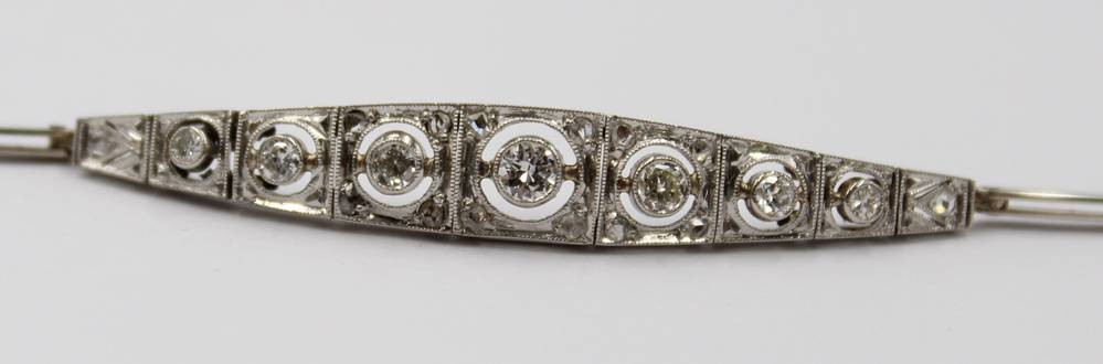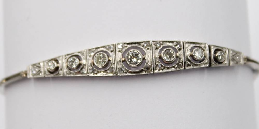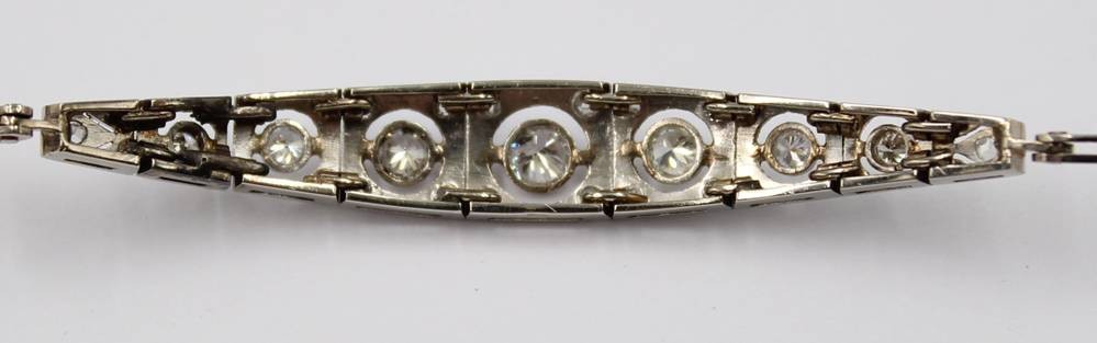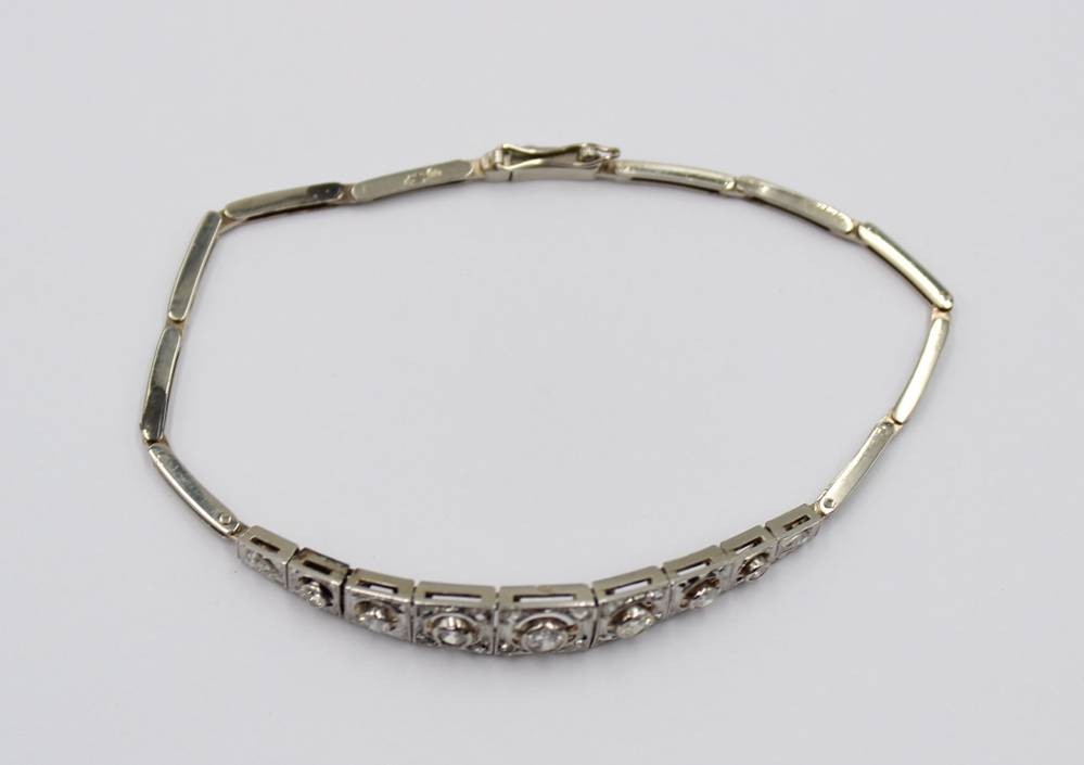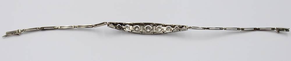 sehr schönes Armband im Art-Déco-Stil, wohl Platin mit Brillantbesatz, sehr guter Zustand, ca. 6,4gr., L-18cm [1]