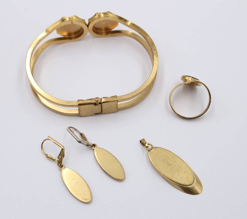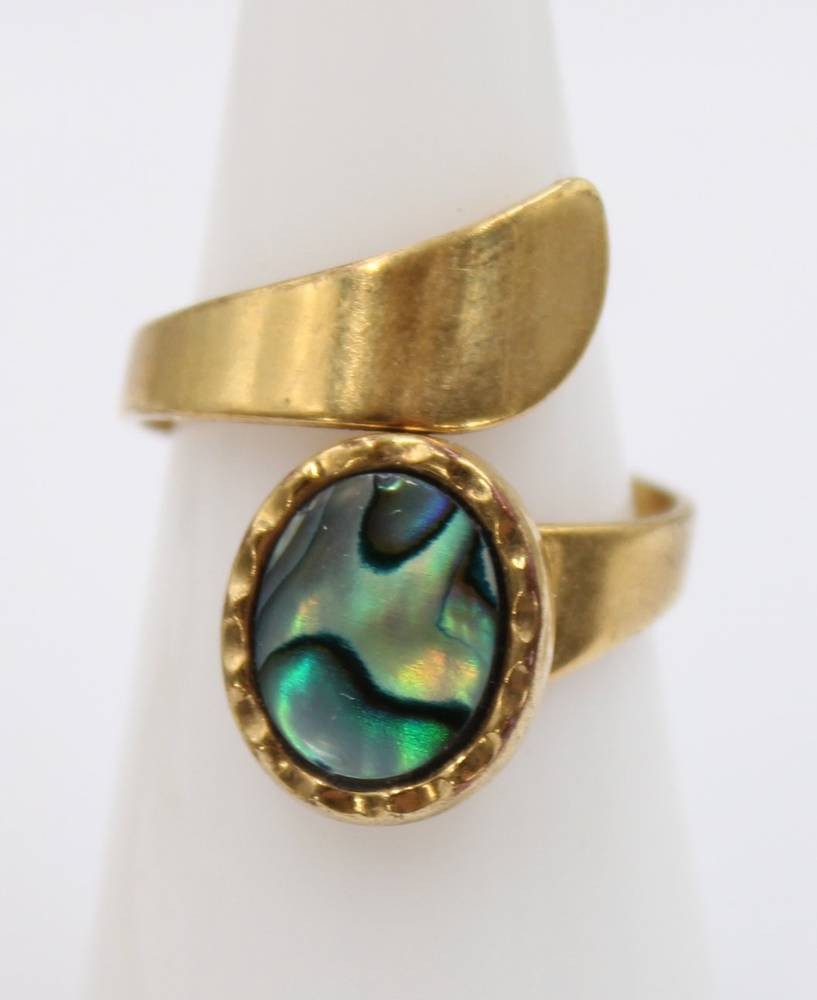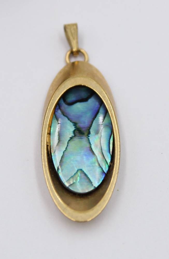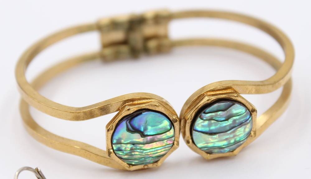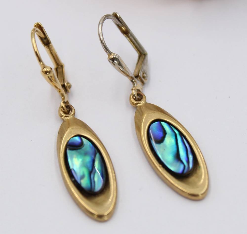 Set aus Paua-Muschel-Schmuck, Armband, Ring, Ohrhänger und Anhänger, goldfarben [1]
