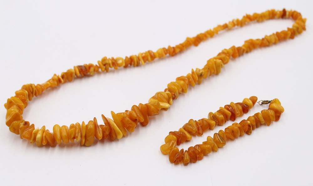 Set, Bernstein, Kette und Armband, Kette endlos, Armband ca. L-21cm, zus. 56,1gr. [1]