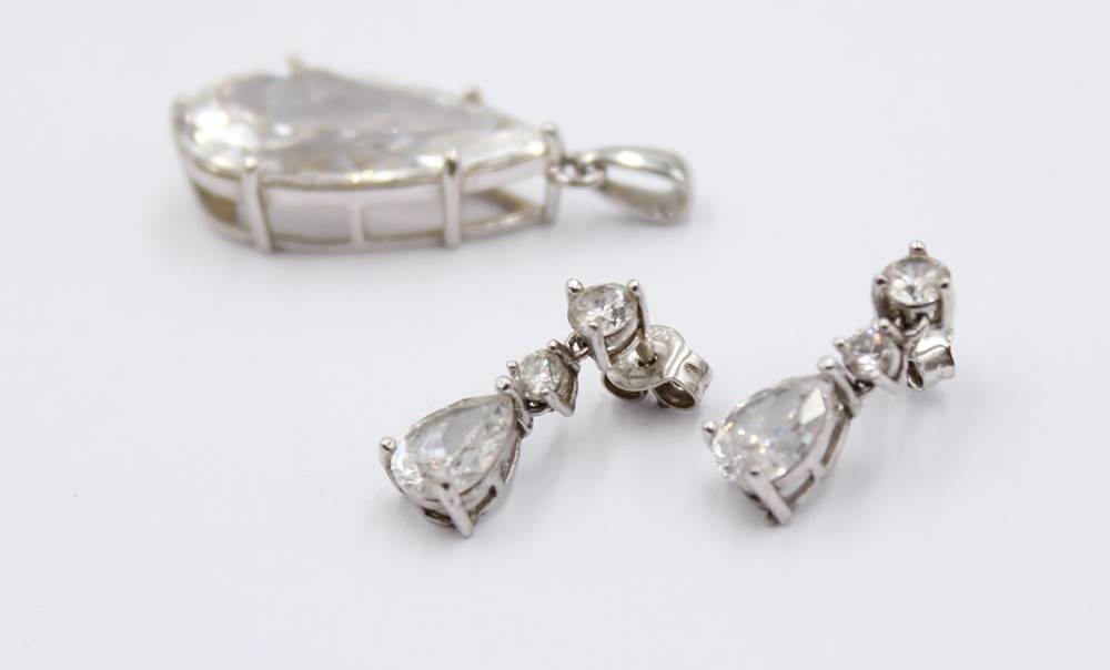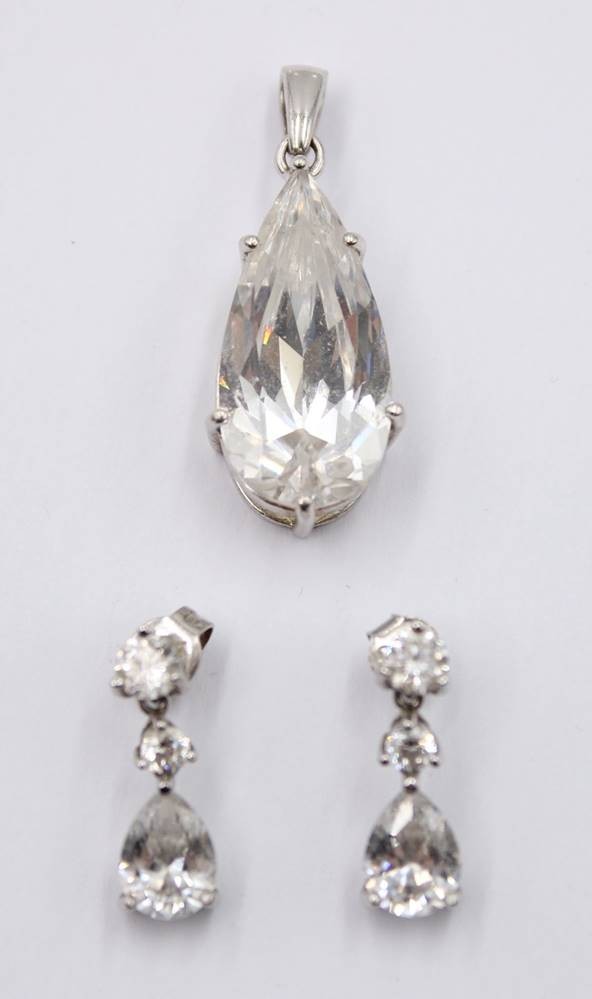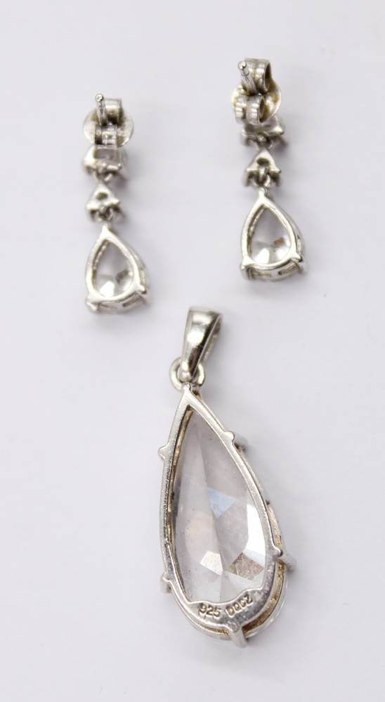 Set, Paar Ohrstecker und passender Kettenanhänger, 925er Silber, klare Steine, zus. 8gr., L-3cm u. L-2cm [1]