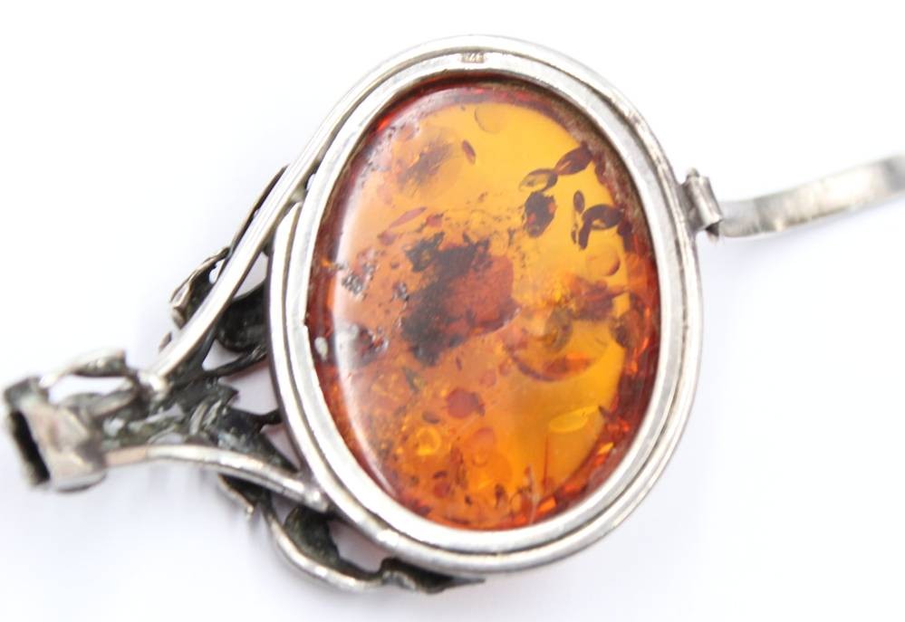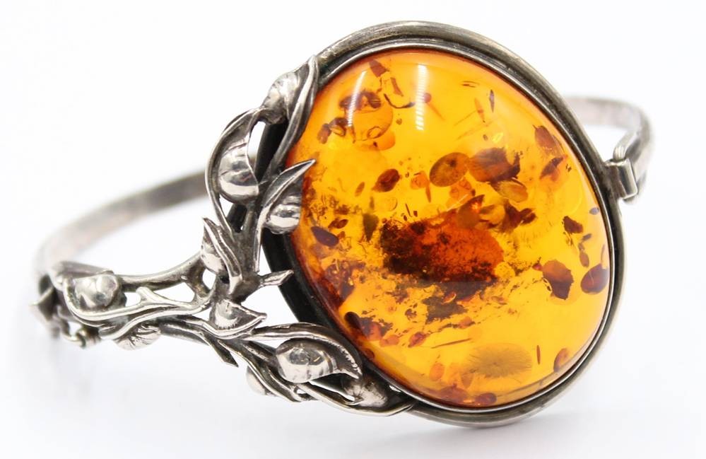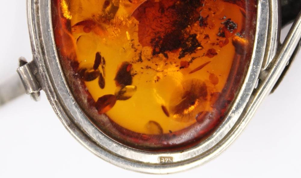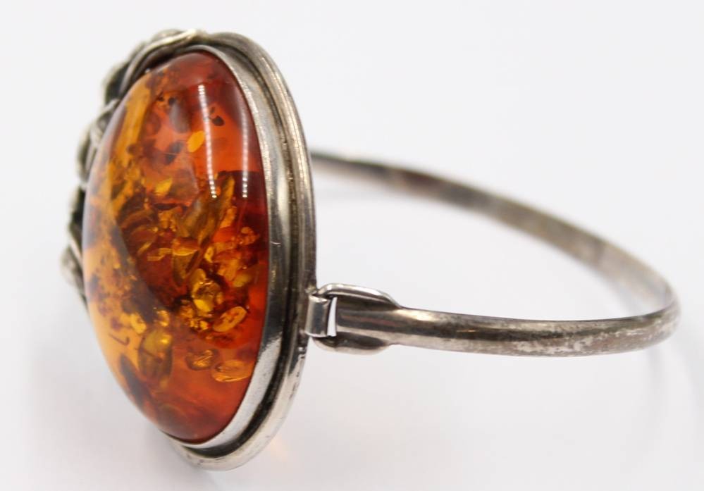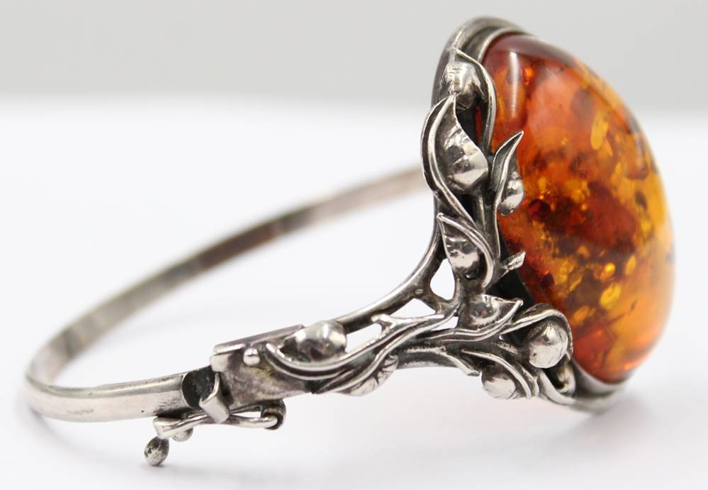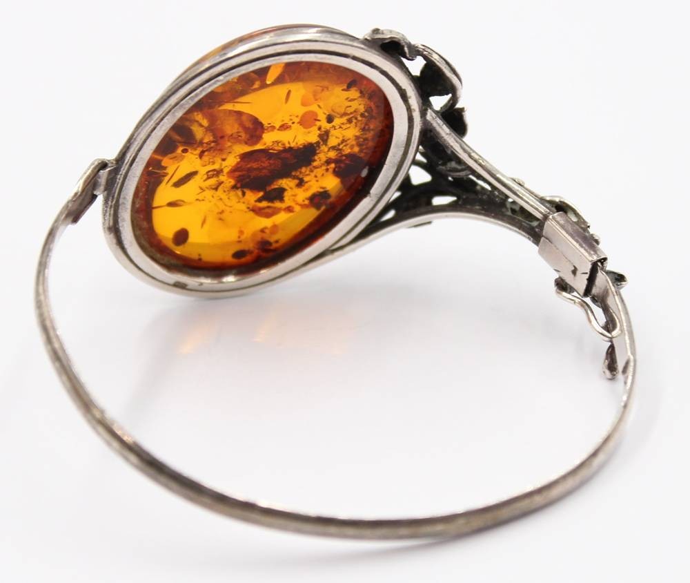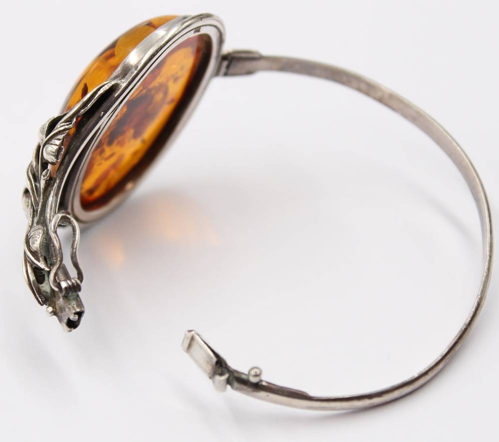 Silber-925- Armreif mit grossen Bernstein (ca. 4x3 cm)mit Einschlüssen, 27 gr. [1]