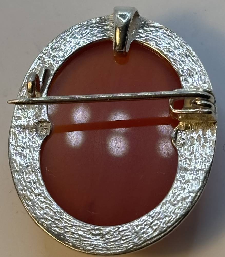 Silber-925- Brosche/Anhänger mit Bernstein, 3x2,5 cm, 10,3 gr. [1]
