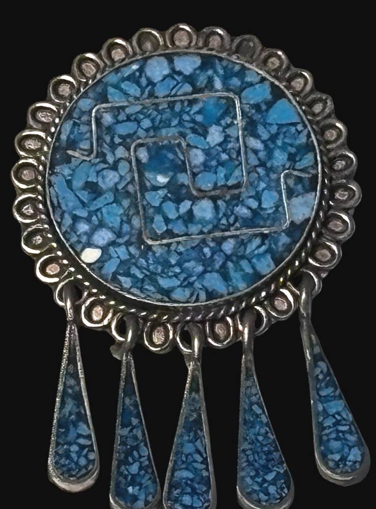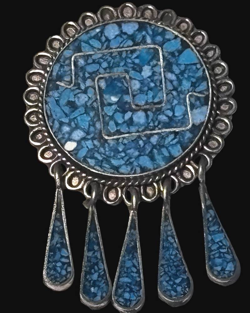 Silber-925- Brosche bzw. Anhänger, Mexico, Türkise, H-ca. 4 cm, 6,2 gr. [1]