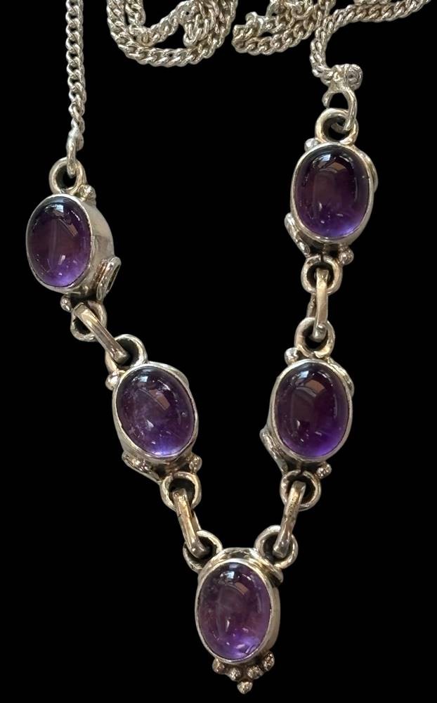 Silber-925- Collier mit 5 Amethyst Cabouchons, L-42 cm, 10,9 gr [1]