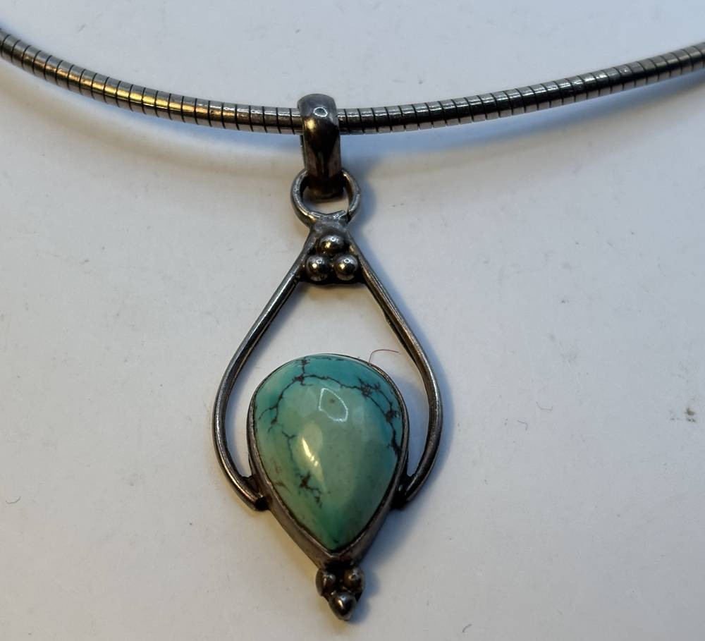 Silber-925- Halsband mit Türkis-Flyer, Silberfassung, L-ca. 46 cm, Flyer 4 cm, 16,3 gr [1]
