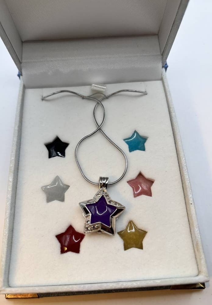 Silber-925- Schlangenhalskette mit Sternanhänger ,Einsätze in 7 verschieden Farben, neu in Etui, Italy [1]