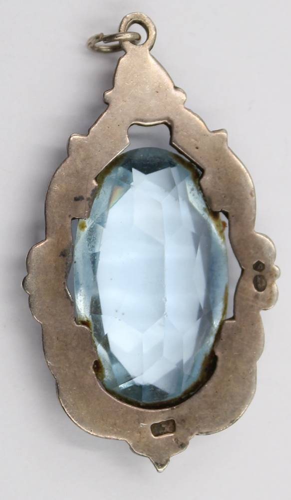 Silber-Anhänger-925- mit grossen, hellblauen Stein, H-ca. 4,2 cm, ca. 9,5 cm [1]