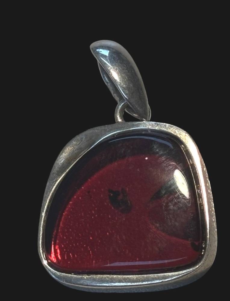 Silber-Anhänger mit Bernstein, div, schwer lesbare Punzen, H-ca. 3,5 cm, 6,3 gr.