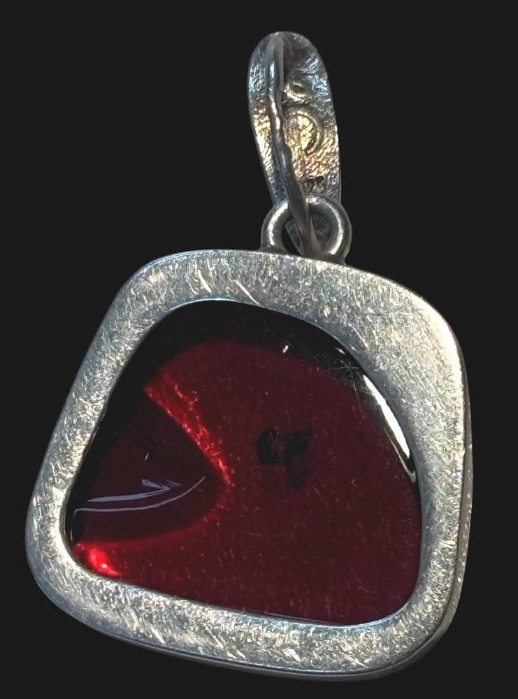 Silber-Anhänger mit Bernstein, div, schwer lesbare Punzen, H-ca. 3,5 cm, 6,3 gr. [1]