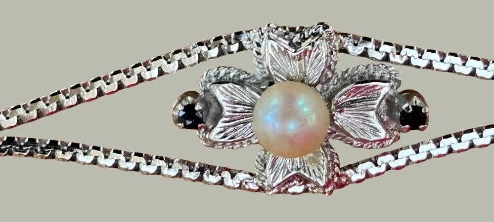 Silber Armkette-835- mit Perle, 2 Safire, L-18 cm, 8,4 gr. [1]