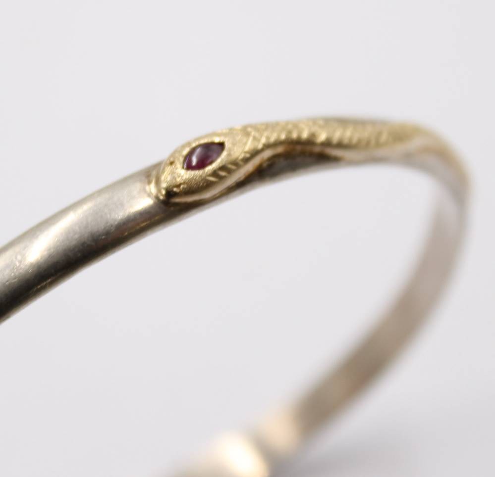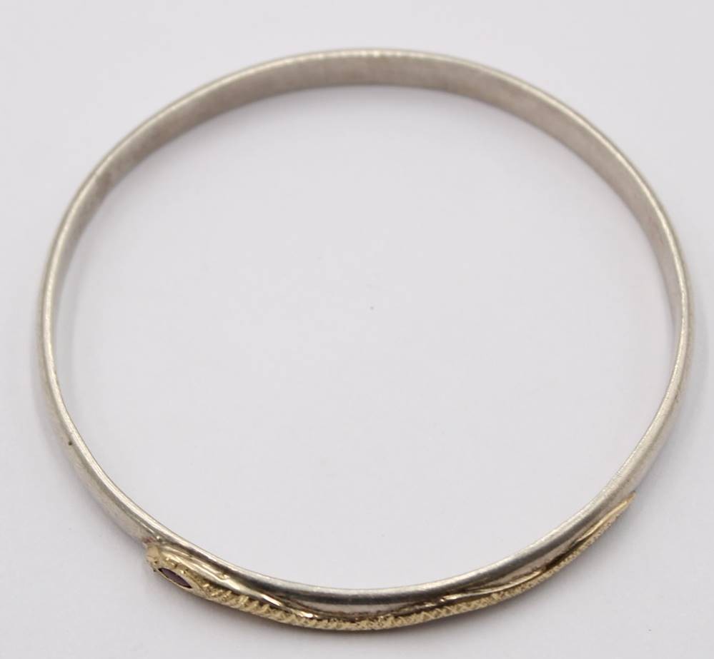 Silber Armreif mit Schlange aus Gold 585 ( getestet ), Rubin Auge, D. 6,8 cm, 21,5 Gramm [1]