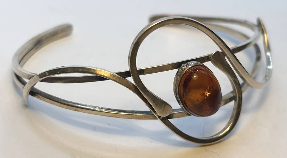 Silber-Armspange -925- mit Bernstein, 12,8 gr [1]