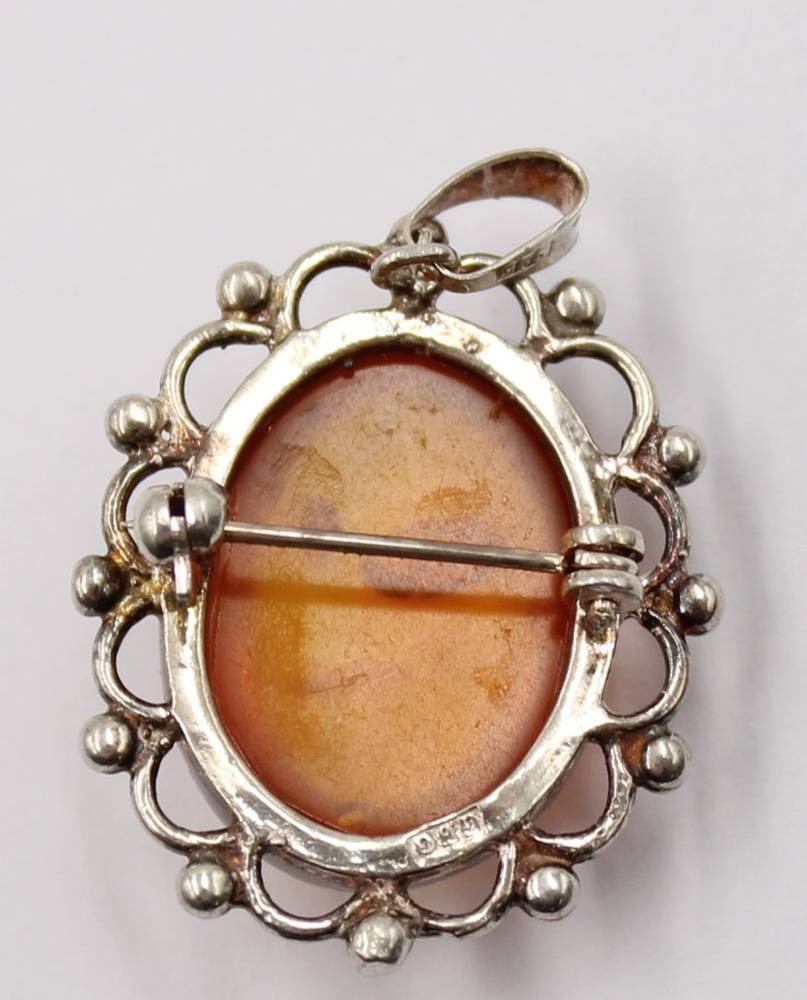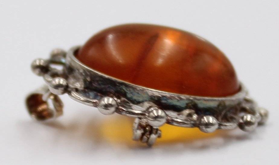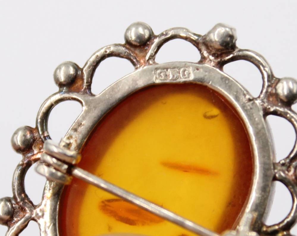 Silber-Brosche bzw. Anhänger mit Bernstein, 4,6 gr., 2,5x2 cm [1]