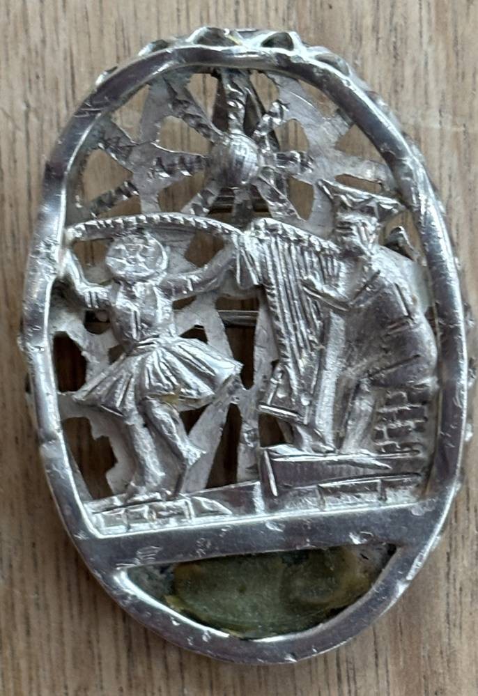 Silber-Brosche bzw. Anhänger, Silber-925-Handarbeit, ,Harfe-Spieler und Tänzer, H-ca. 4 cm, 7,1 gr. [1]