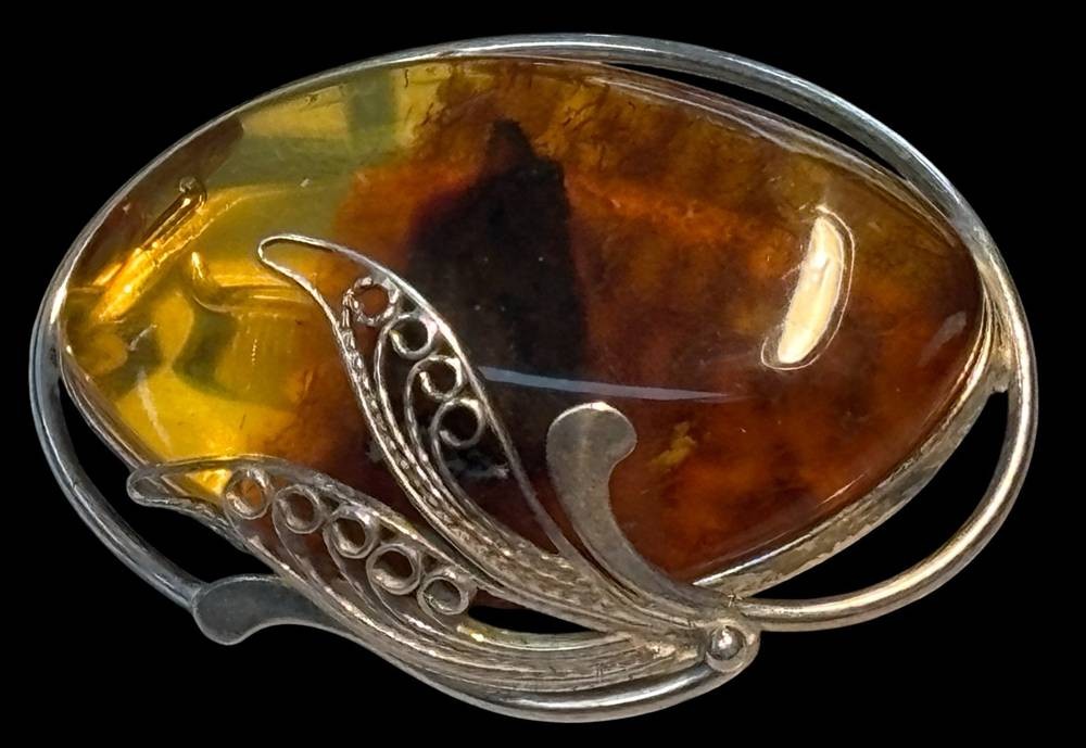 Silber-Brosche mit Bernstein, 5x3,5 cm, 14,5 gr [1]