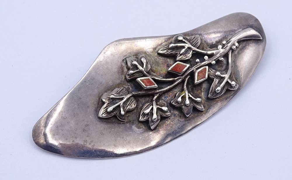 Silber Brosche mit roten Einlagen, Silber 925/000, 6,0cm, 9,0g. [1]
