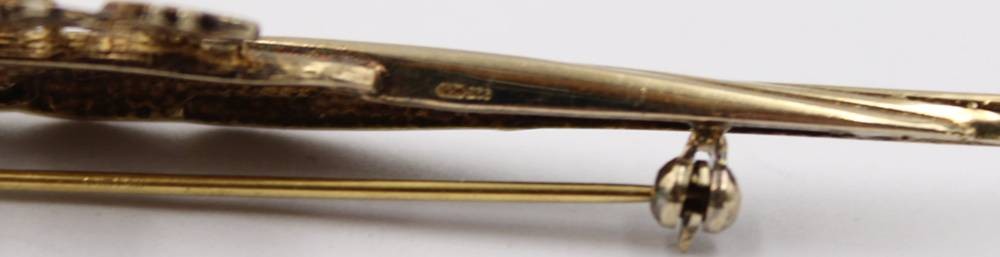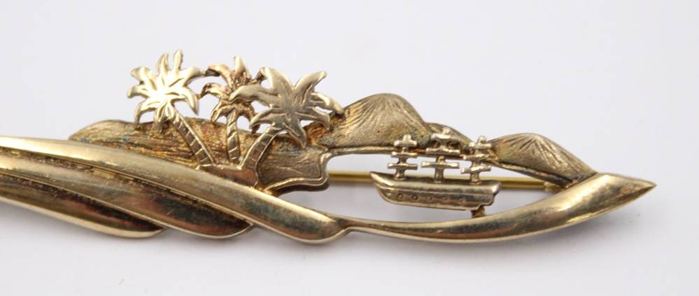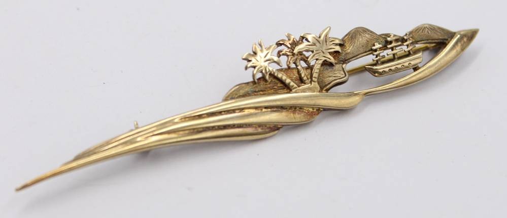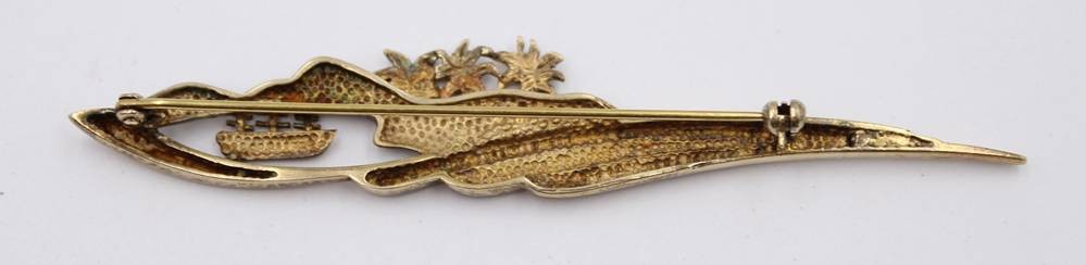 Silber-Brosche, vergoldet, Landschaftsdesign, 925er Silber, Nadel Metall, L-8,3cm [1]