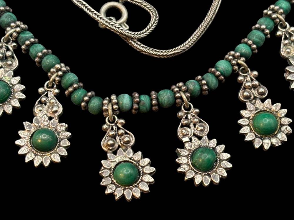Silber Collier mit Malachit, geprüft, L-ca. 45 cm, 30,1 gr., um 1900? [1]