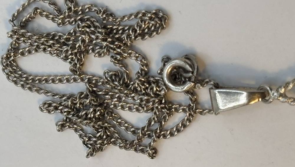 Silber-Halskette mit Anhänger, brauner Stein, L-ca. 60 cm, 6,5 gr