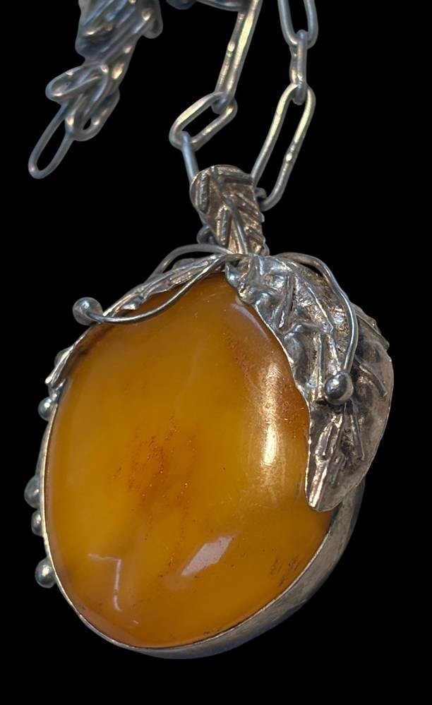 Silber-Halskette mit gelben Bernstein Anhänger, L-ca. 56 cm, 14,4 gr [1]