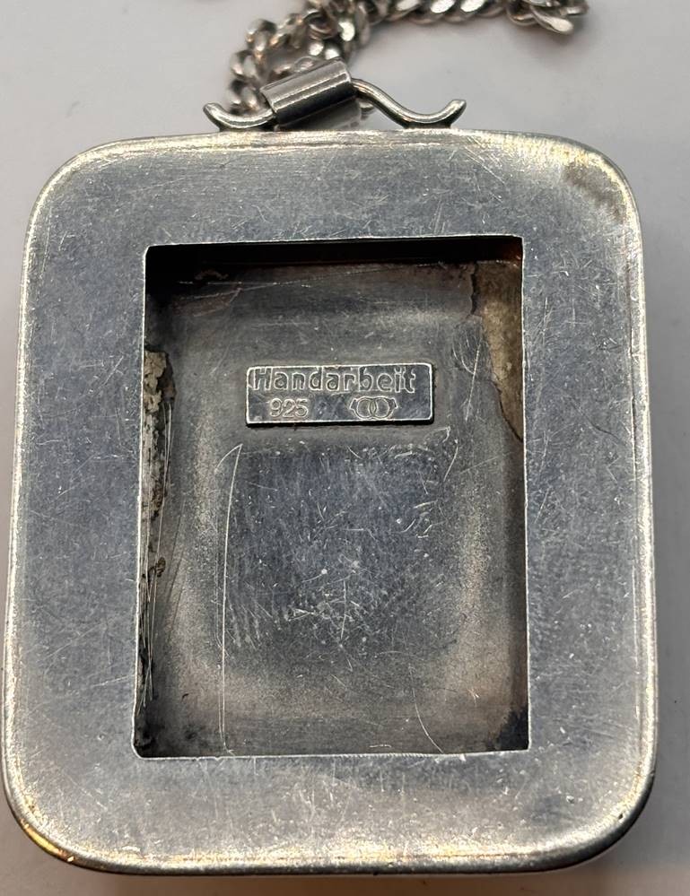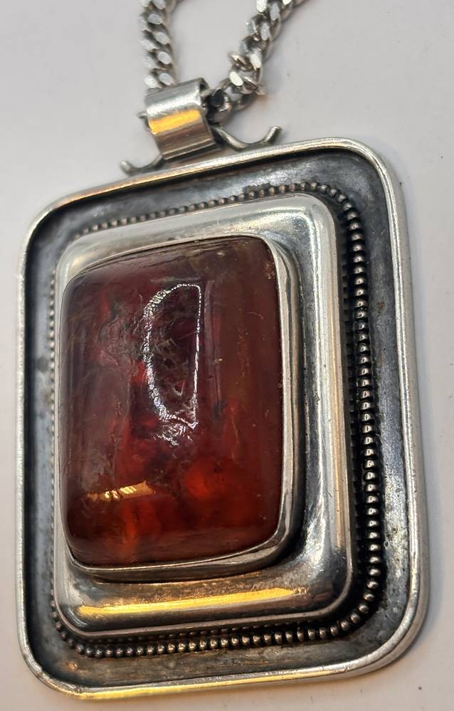 Silber-Halskette mit grossen, massiven Anhänger-925-, Bernstein, Handarbeit, L-70 cm, Anhänger 4,5x3,5 cm, zusammen 47,2 gr. [1]