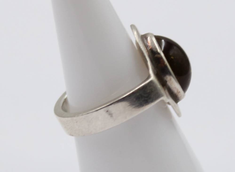 Silber-Ring mit Bernstein-Cabochon, gepr., 6,6gr., RG 58 [1]