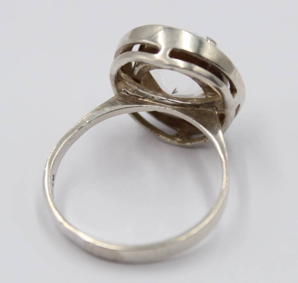 Silber Ring mit weißem Stein, vermutlich Bergkristall, 925er, RG53, 3,2 gr. [1]