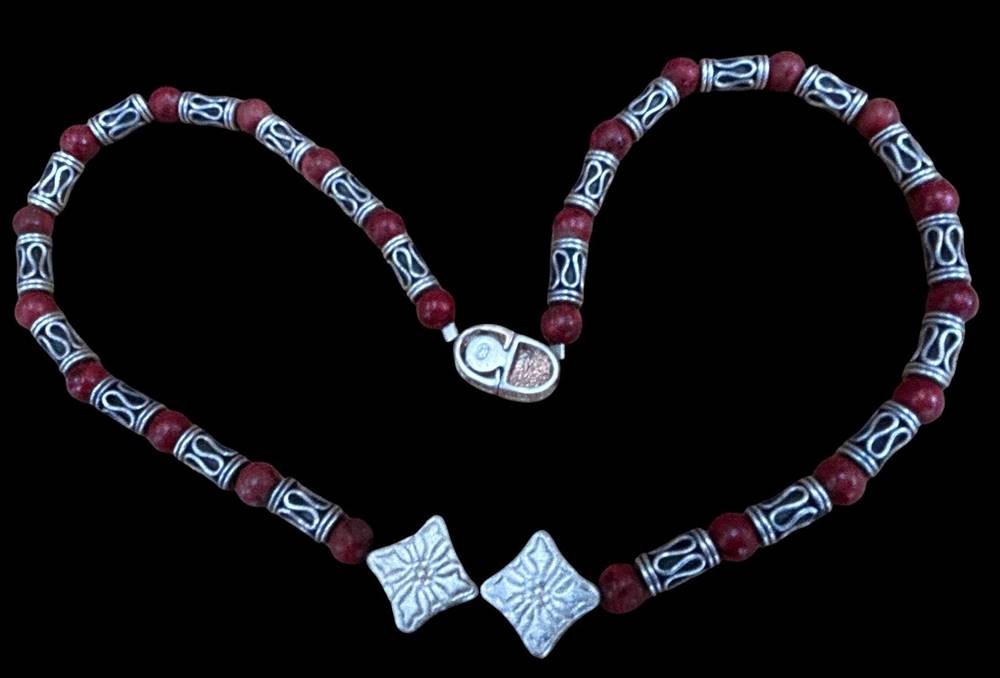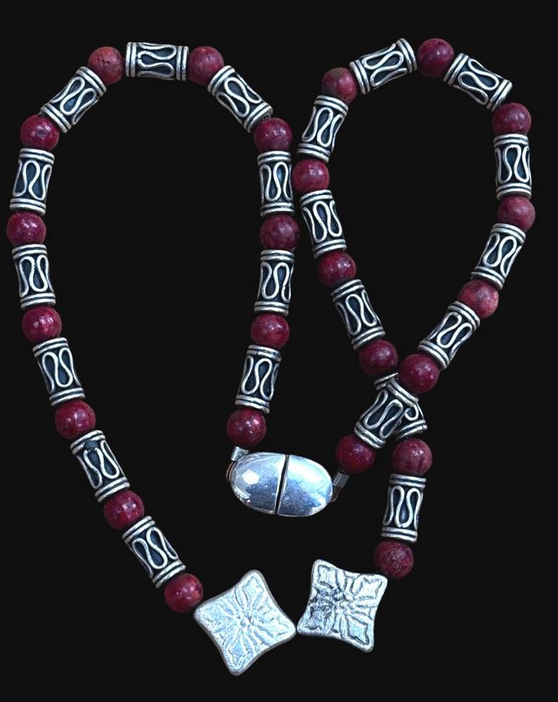 Silbercollier-925- mit rote (Koralle?) Kugeln, L-42 cm, 41 gr. [1]