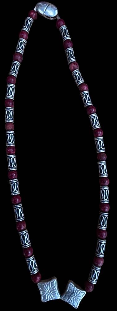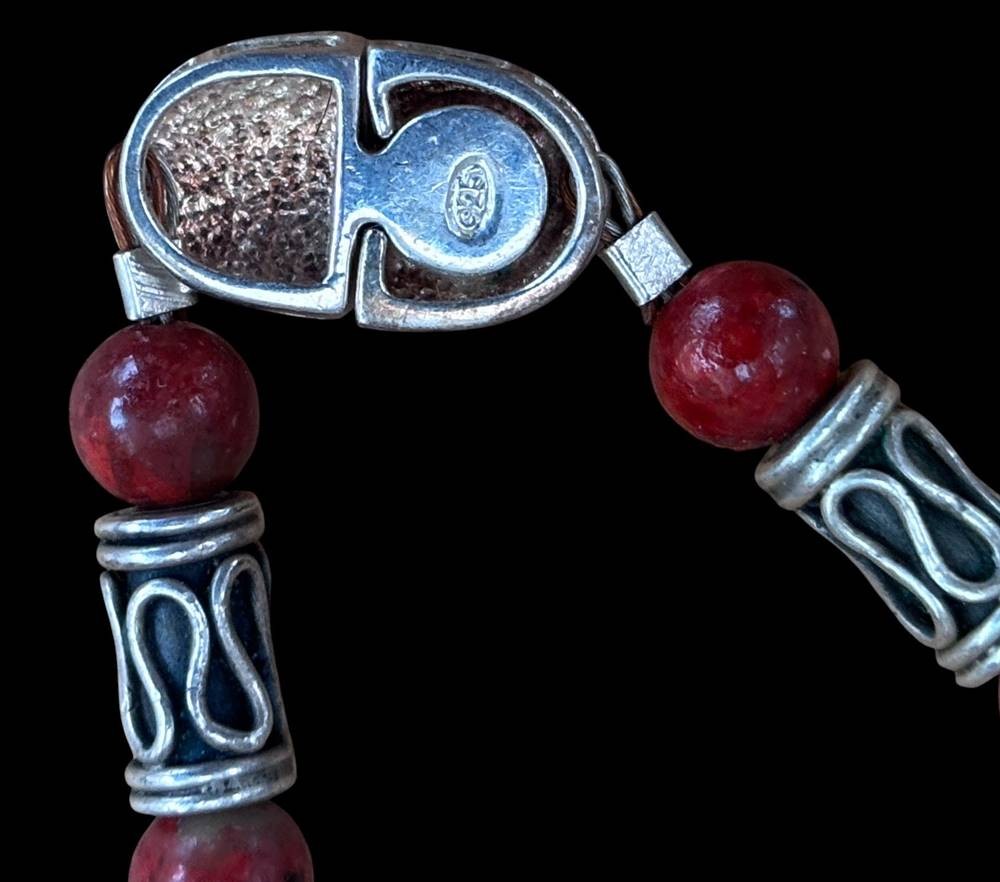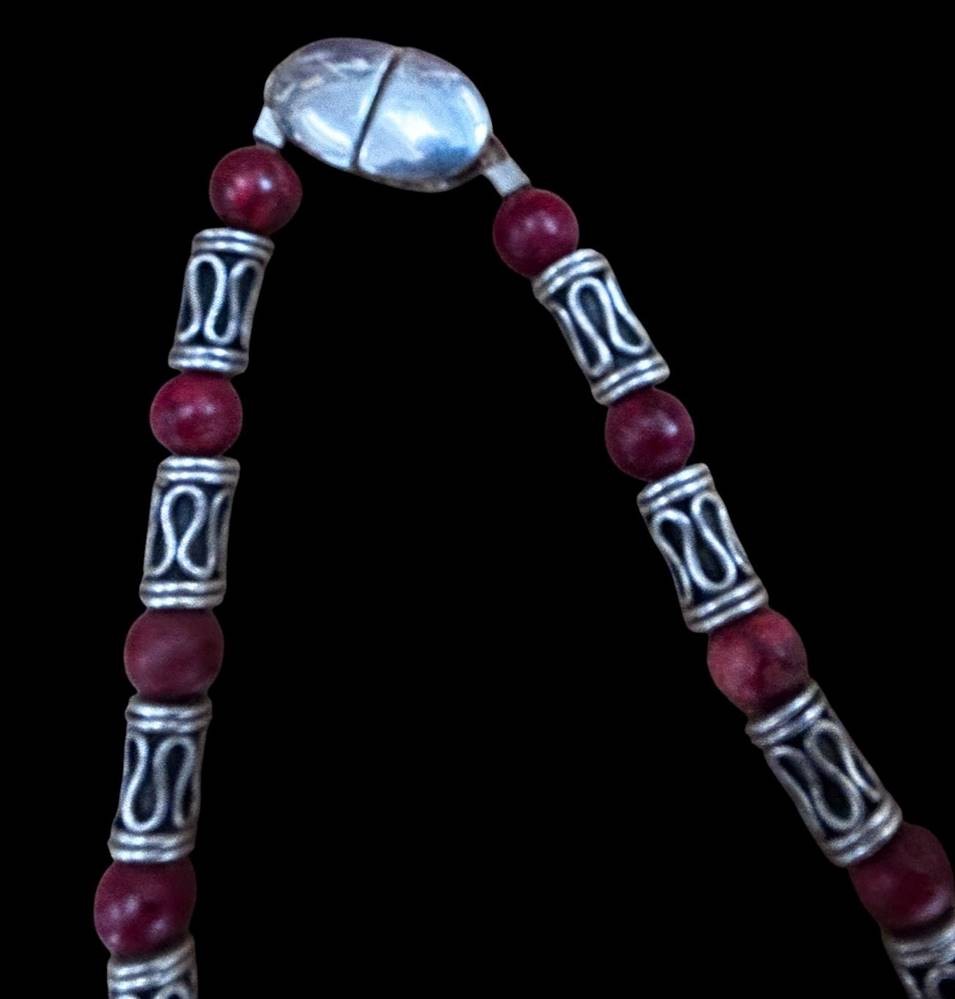 Silbercollier-925- mit rote (Koralle?) Kugeln, L-42 cm, 41 gr.