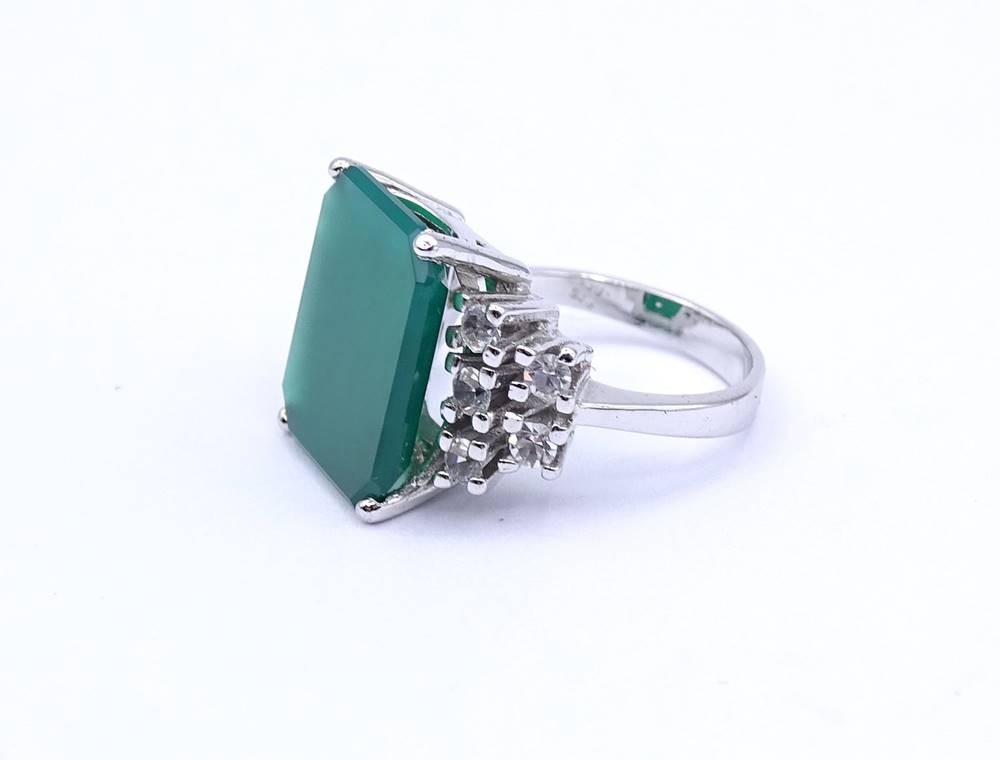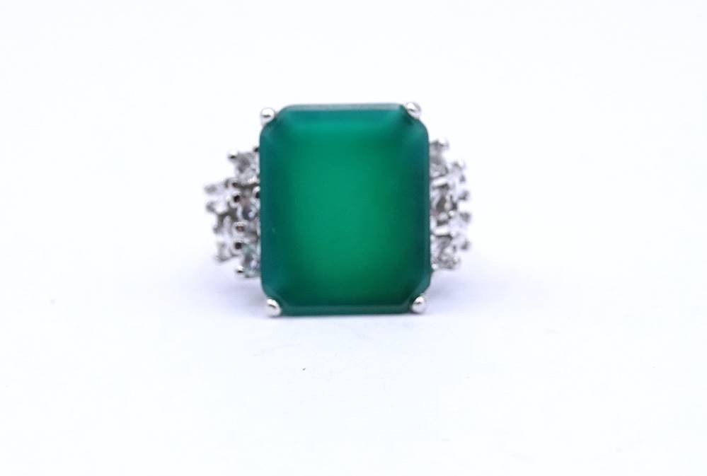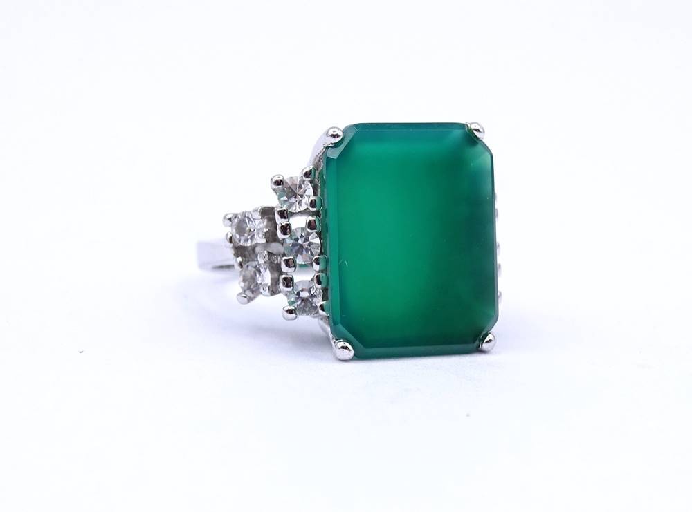 Silberfarbener Ring mit Chalzedon und klaren Steinen,-925- gestempelt, aber nur versilbert, RG 51 [1]