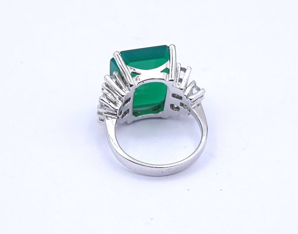 Silberfarbener Ring mit Chalzedon und klaren Steinen,-925- gestempelt, aber nur versilbert, RG 51
