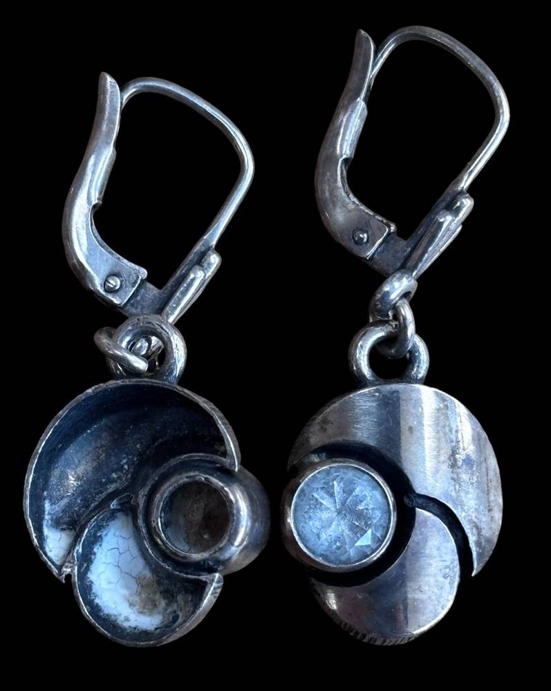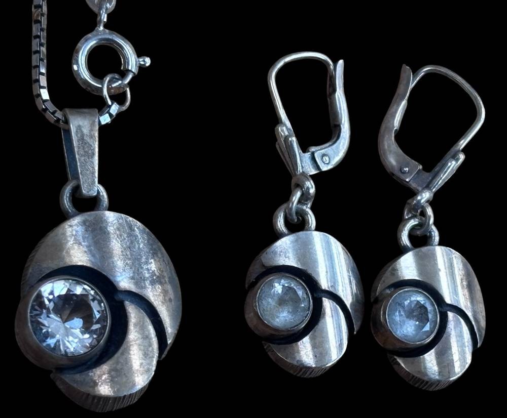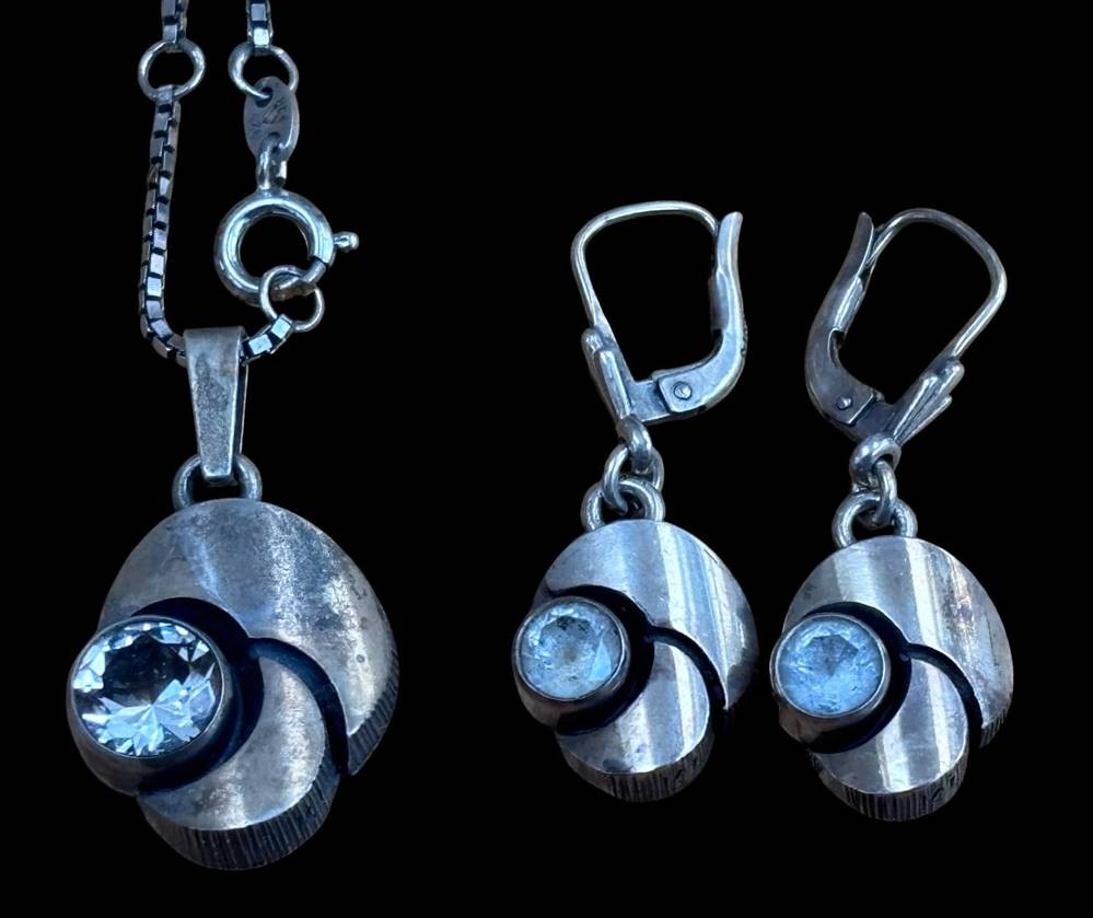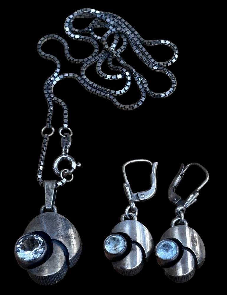 Silberhalskette mit Anhänger, Paar Ohrhänger, Silber-925-, klare Steine, ca. 14,5 gr [1]