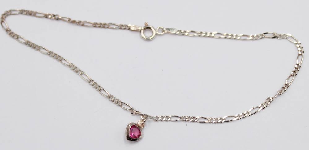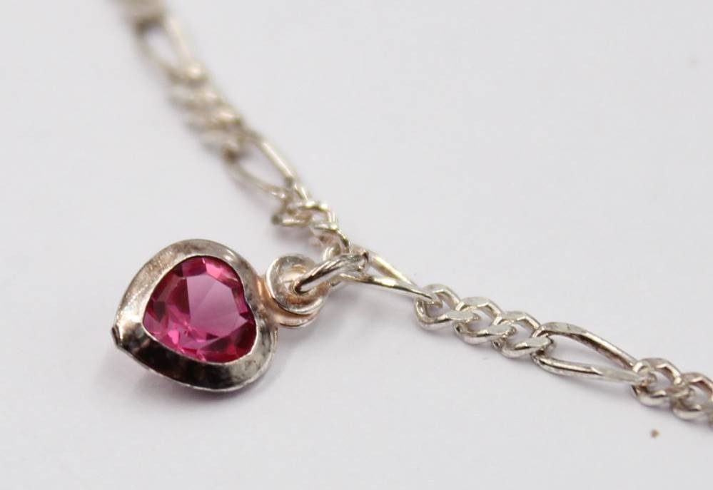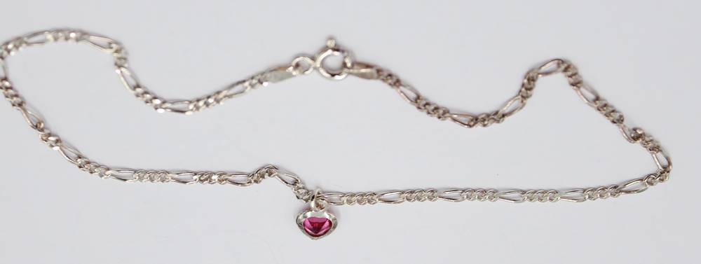 Silberkette-925- mit kl. Herzanhänger, lila Stein, L-26 cm (Fusskette?), 2,5 gr. [1]
