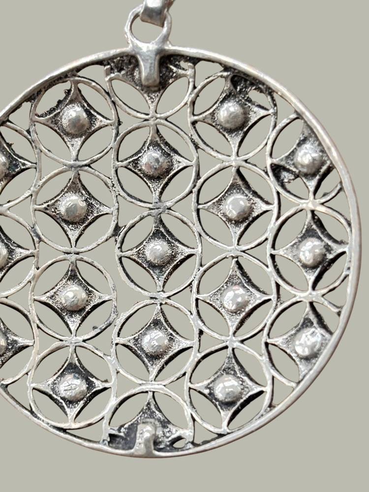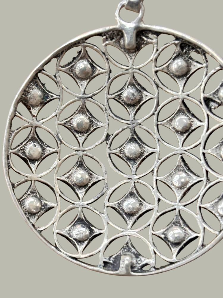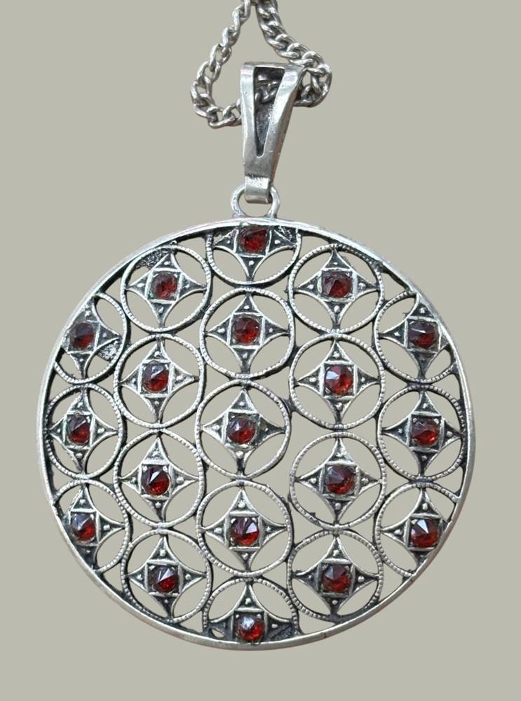 Silberkette mit grossen Silber-Anhänger-925-, rote Steine, 23,2 gr., L-70 cm, D-4 cm [1]