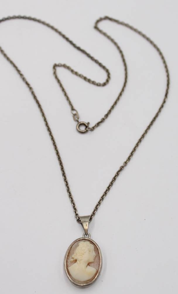Silberkette mit kl. Camee-Anhänger, zus. 6,8 gr [1]