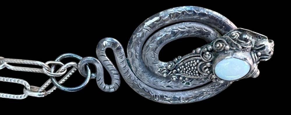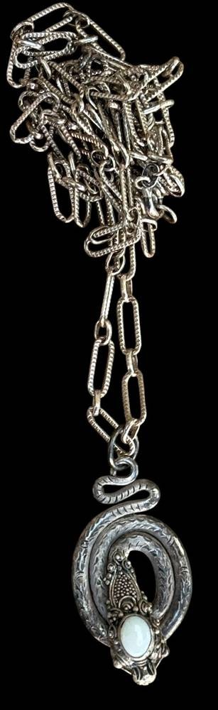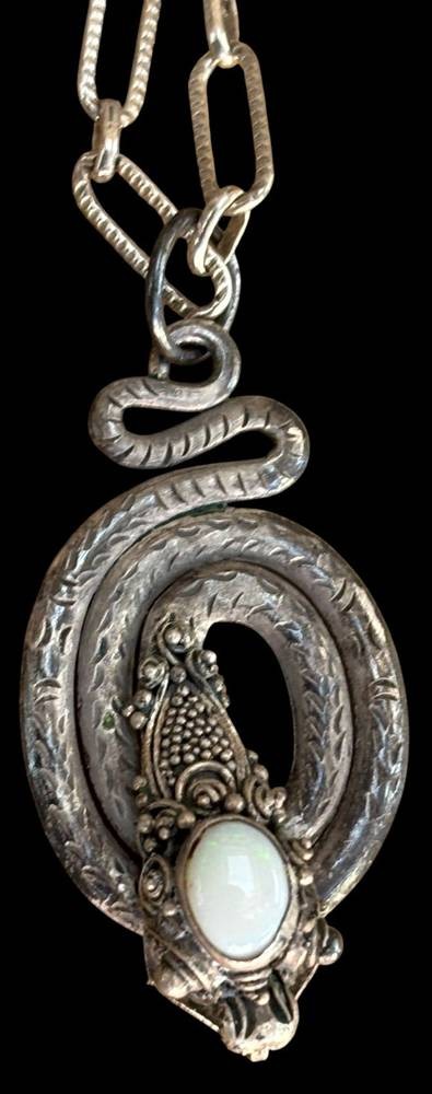Silberkette mit Schlangenanhänger-925- und kl. Opal, L-Kette ca. 75 cm, Anhänger H-4 cm, zus. 14,7 gr [1]