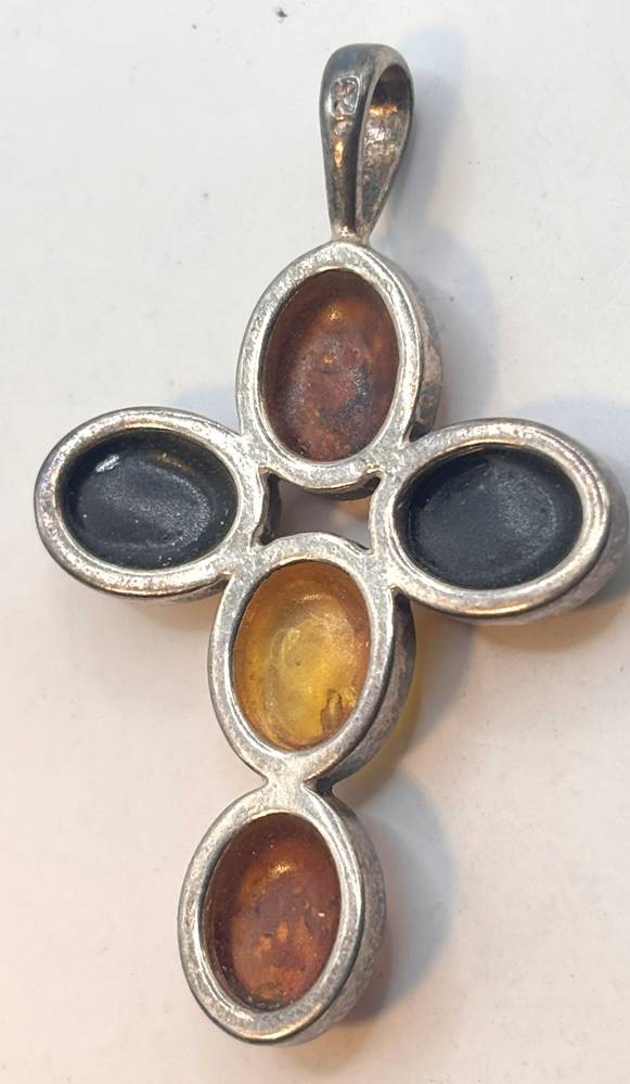 Silberkreuz-925- mit verscheidenfarbigen Bernsteinen, H-4,1 cm, 7,2 gr [1]