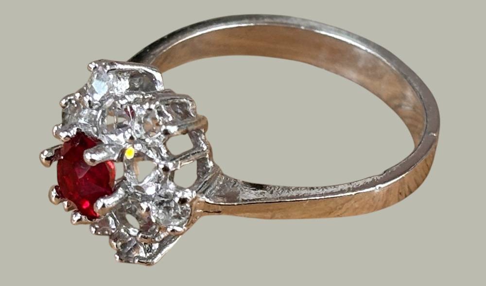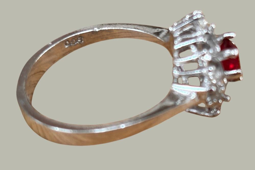 Silberring-800-, roter Centerstein, umringt von klaren Steinen, RG 54, 4 gr. [1]